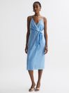 Resort styling calls for the Esme dress. It’s cut from 100% linen for a lightweight feel and it drapes naturally to a midi-length finish. A v-neckline and a side tie element are added to accentuate the profile. Tailor the look with the adjustable, beaded shoulder straps, and slip on your favourite sandals. V-neckline. 100% linen. Side tie design. Side slip pockets. Adjustable shoulder straps. Midi length. The model is wearing a size 8. Measurements of model: Height 5ft 10" / 178cm.