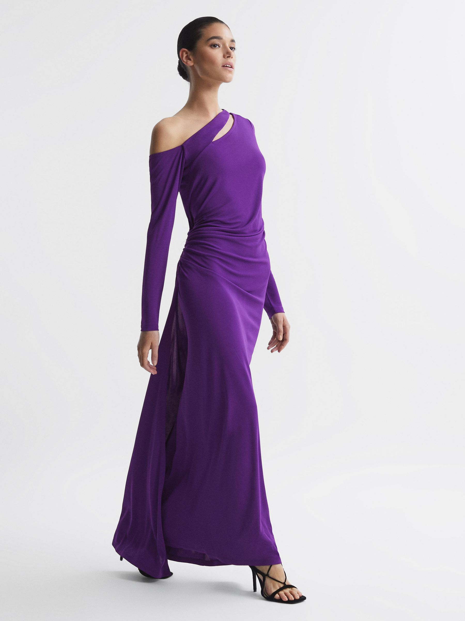 Off-The-Shoulder Cut-Out Maxi Dress in Purple