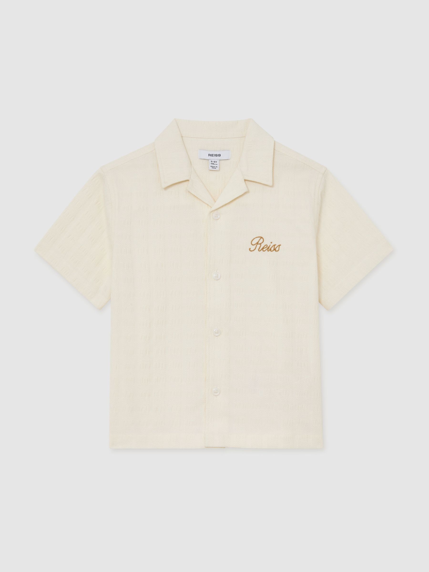 3-9 yrs Cotton Textured-Knit Striped Shirt in Off White/Light Camel