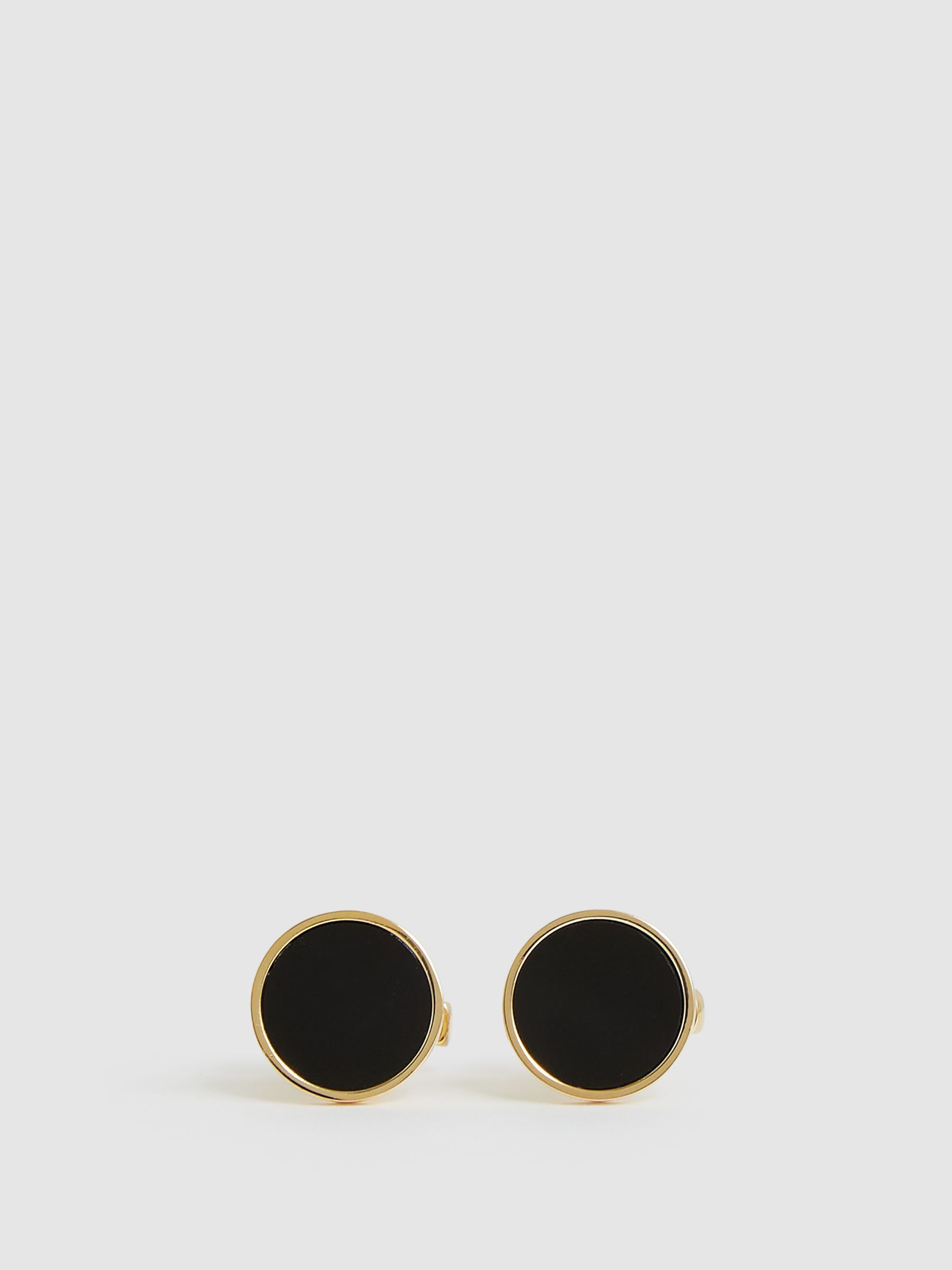 Inlaid Round Cufflinks in Gold Tone /Onyx