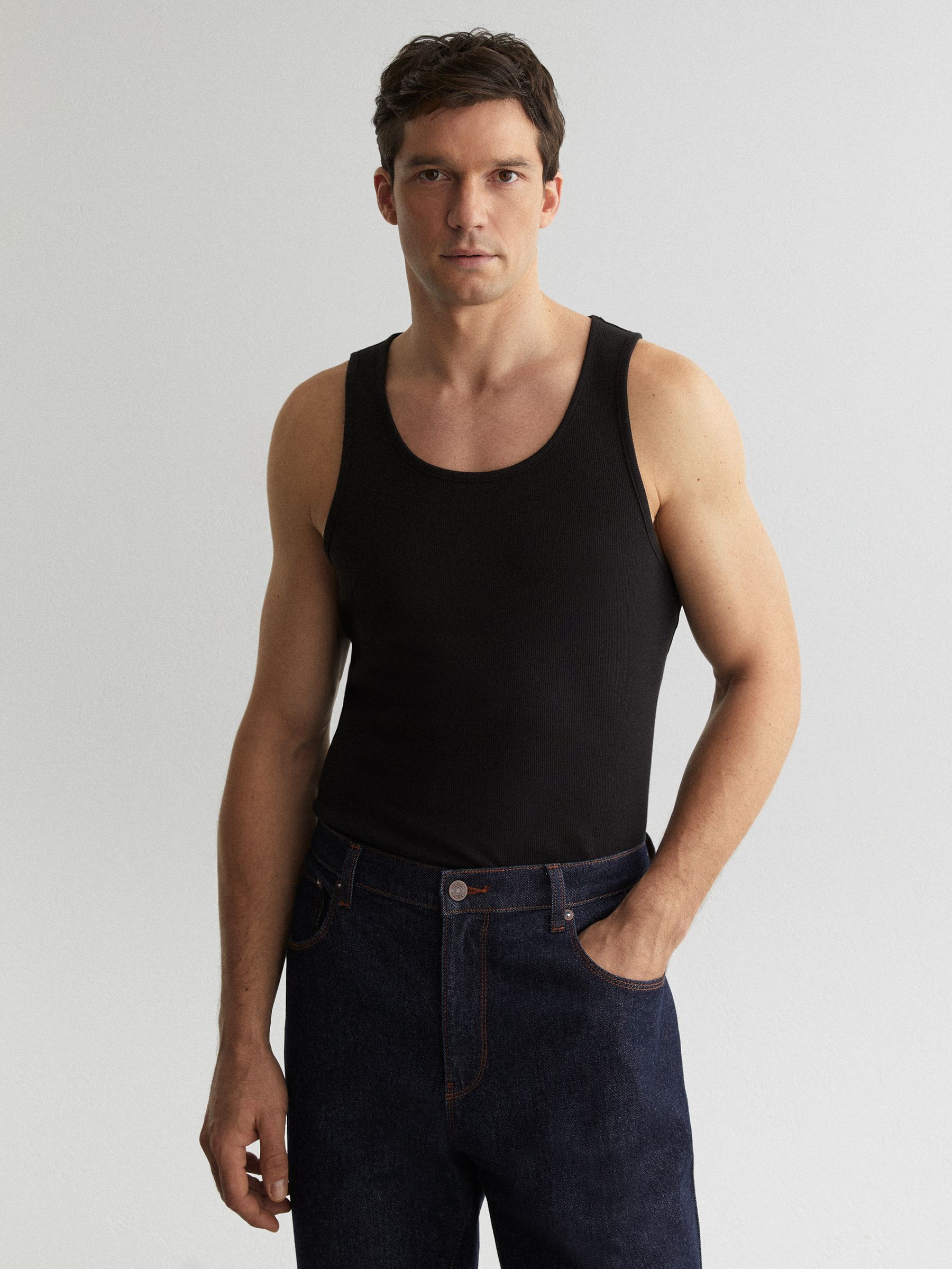 Stretch-Cotton Ribbed Vest in Black