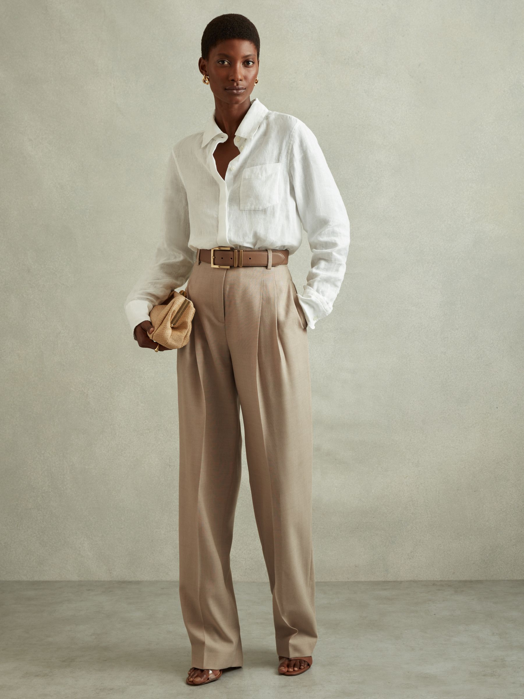 Petite Wool Pleat Front Wide Leg Suit Trousers in Neutral