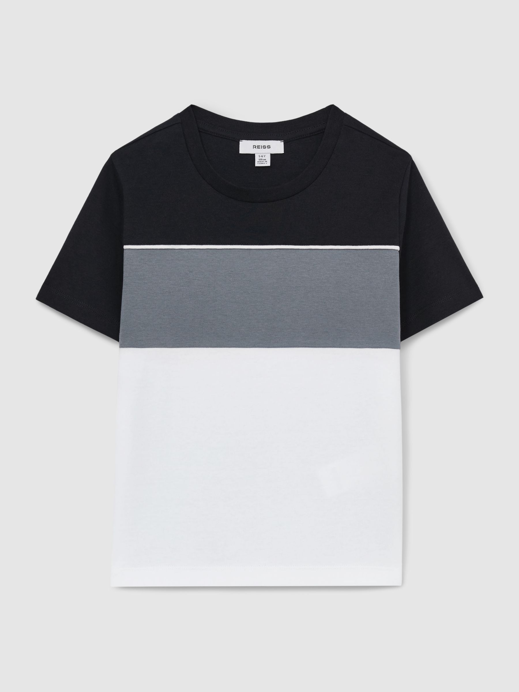 13-14 yrs Cotton Colour-Block Piped T-Shirt in Airforce Blue Multi