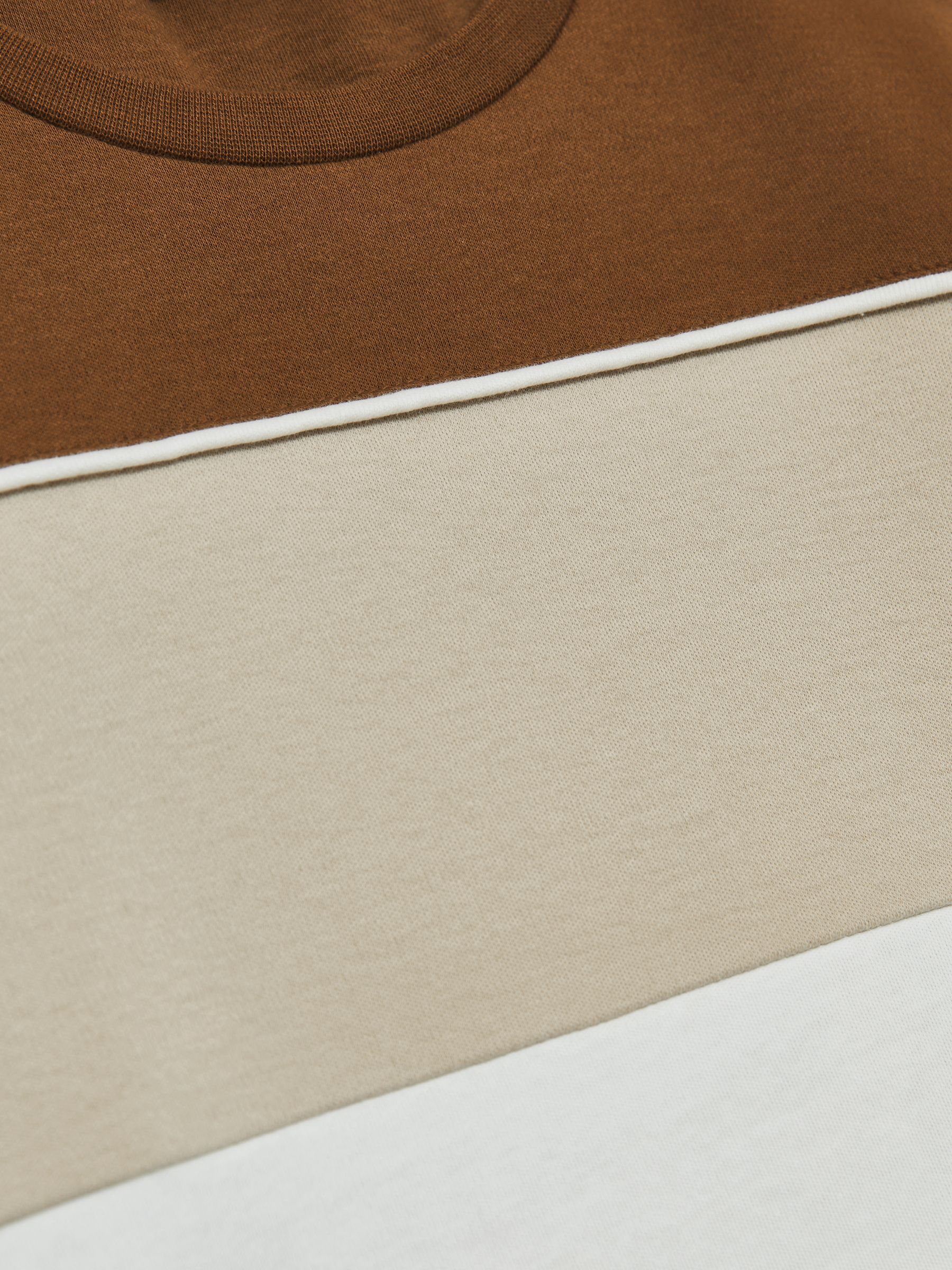 The Tobacco Brown Multi Cole T-Shirt, crafted from soft cotton jersey, stands out with bold colour-blocking and refined piping that adds a clean, modern edge. It’s finished with a classic crew neckline. 100% Cotton Colour-blocking Piping Crew neckline Country of Origin: Great Britain