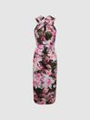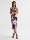 6.12.1 Floral Print Halter Midi Dress in Pink | REISS Australia Click here to use our website with more accessibility support, for example screen readers