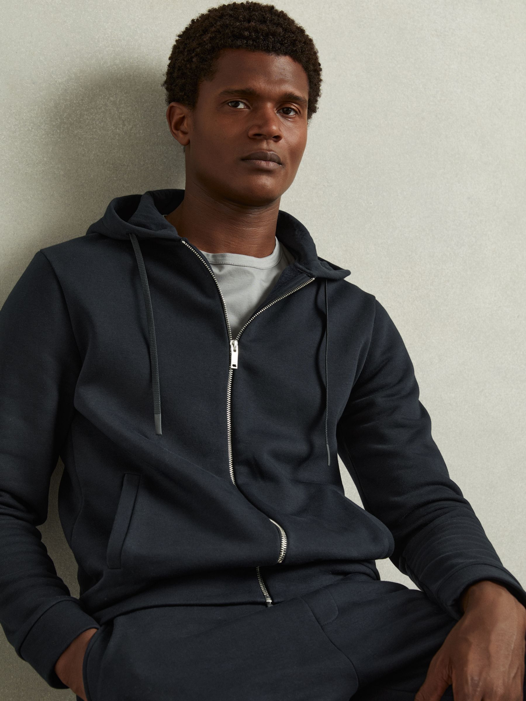 Cotton-Blend Fleeceback-Jersey Zipped Hoodie in Navy