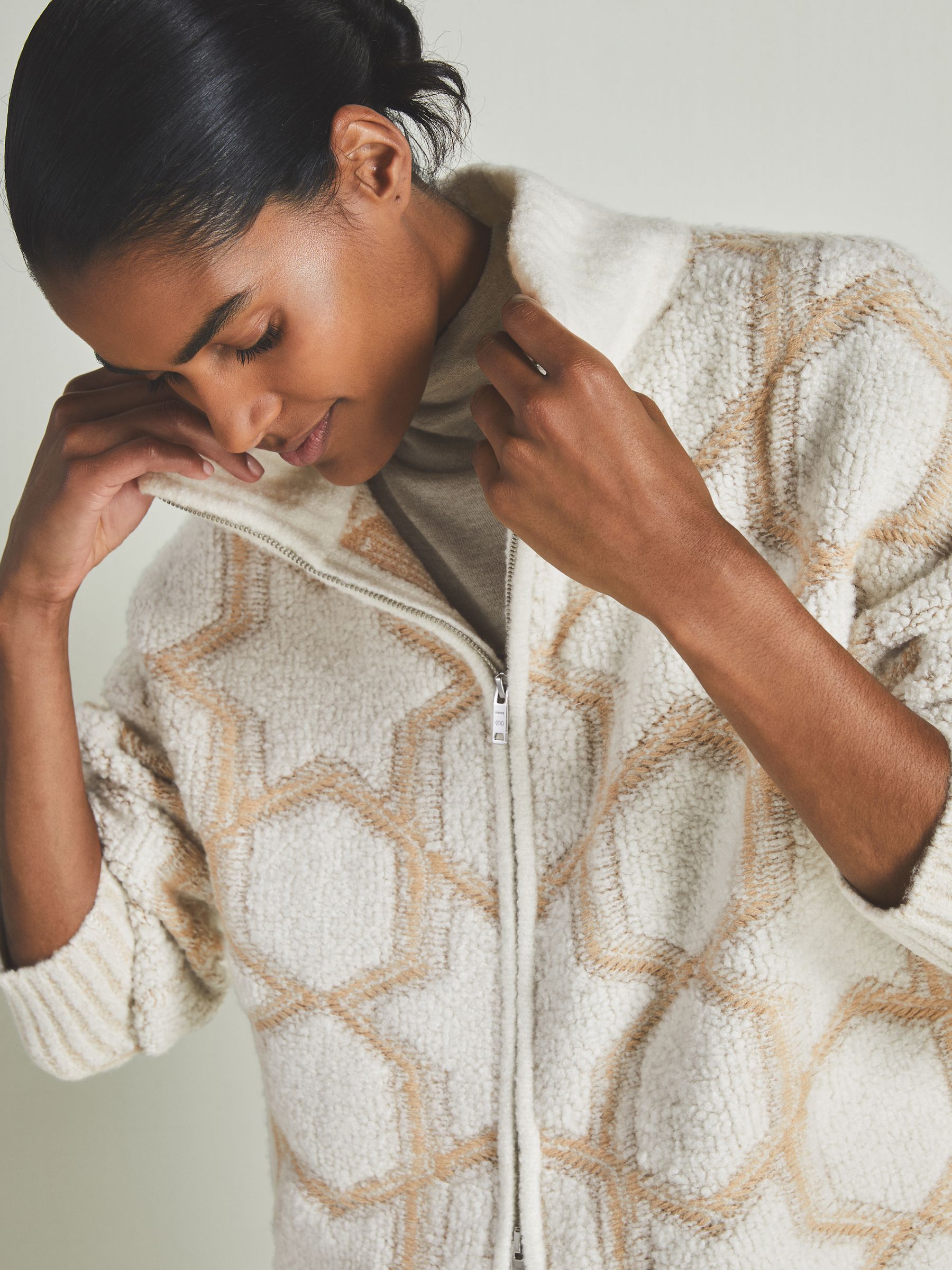 Reiss | Les 100 Ciels Cashmere-Blend Bouclé Jacket in Neutral/Cream