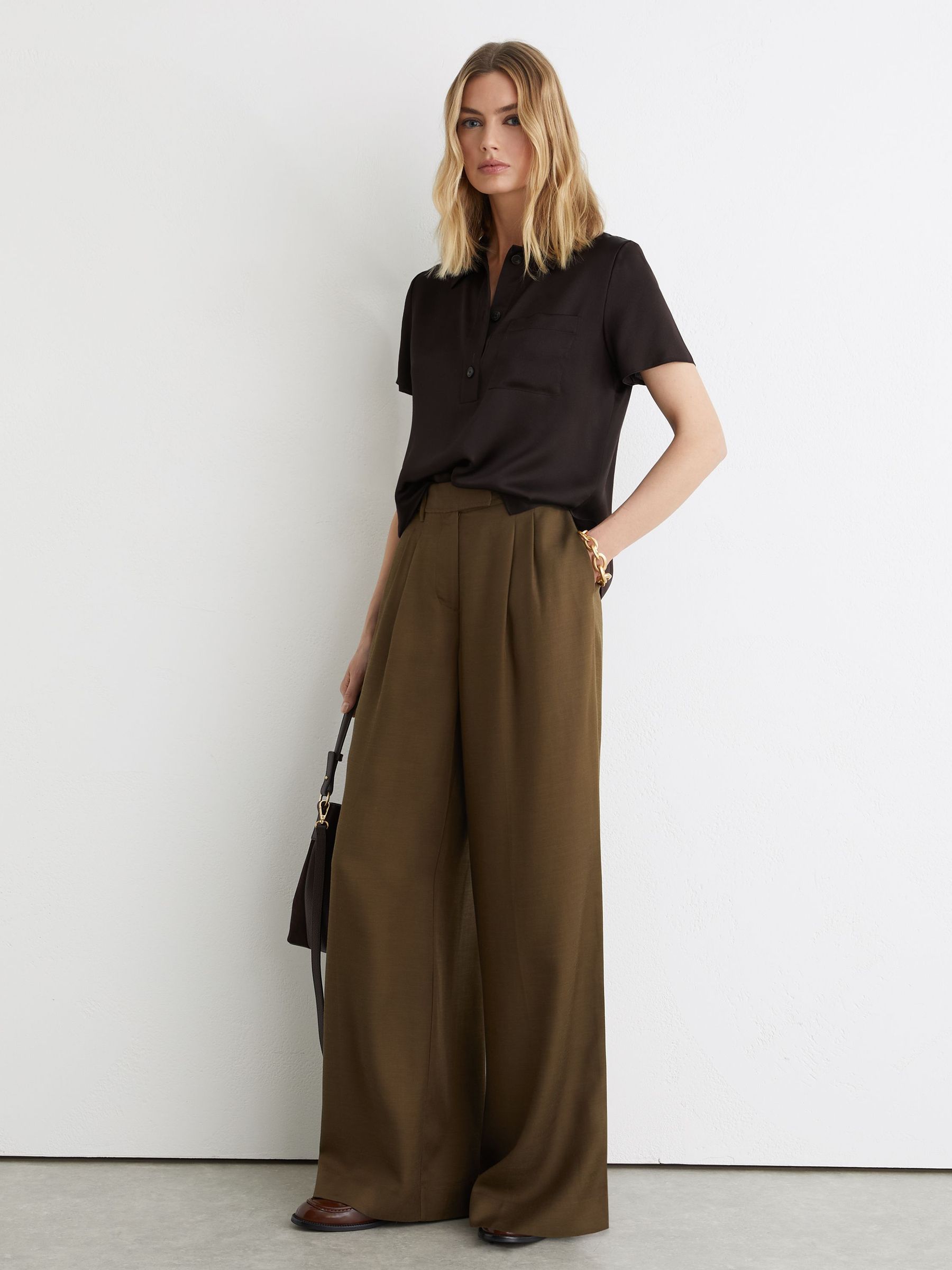 Silk Half-Button Short-Sleeve Shirt in Chocolate Brown