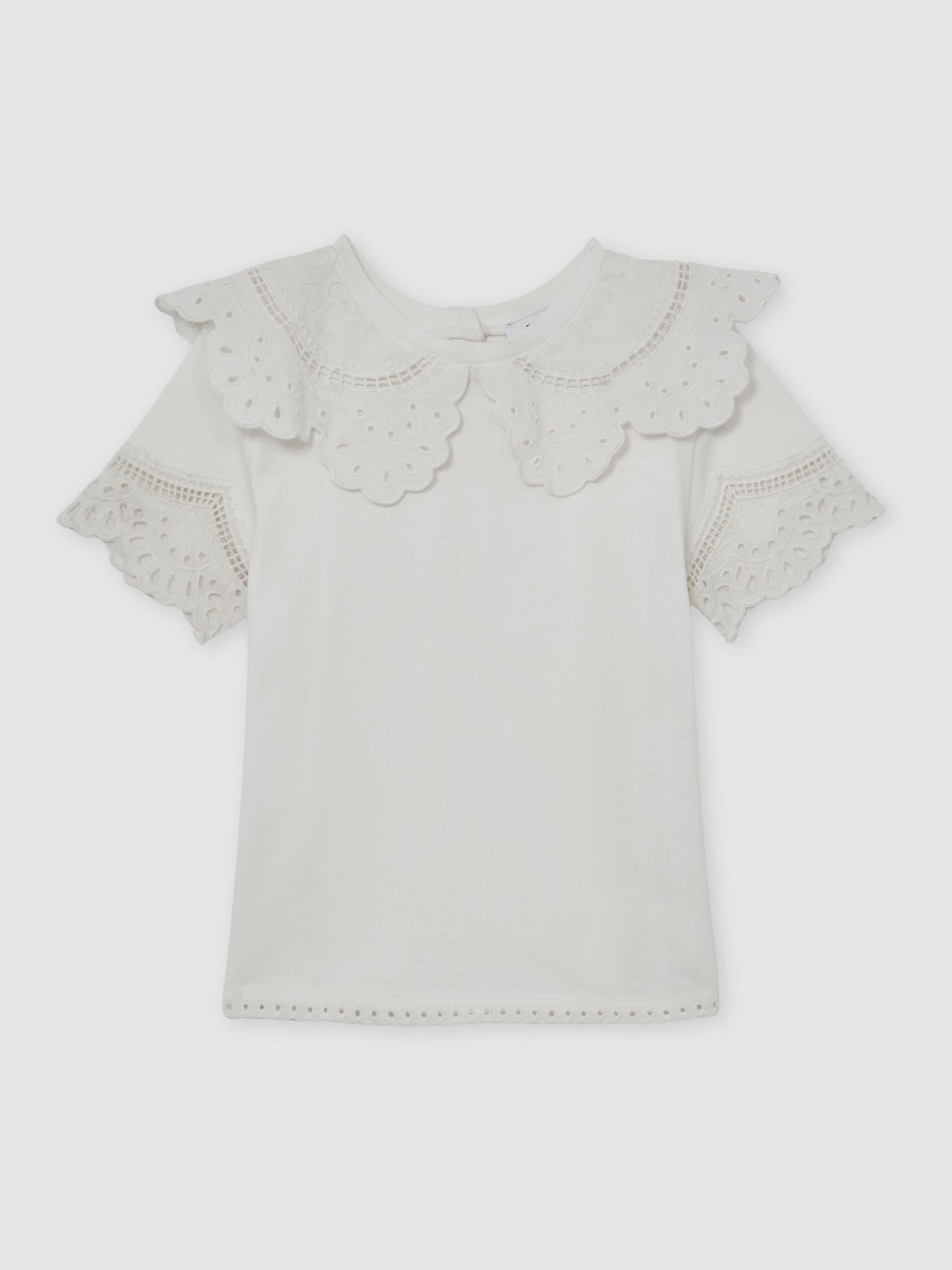 13-14 yrs Cotton Broderie Anglaise Collared Top in Ivory
