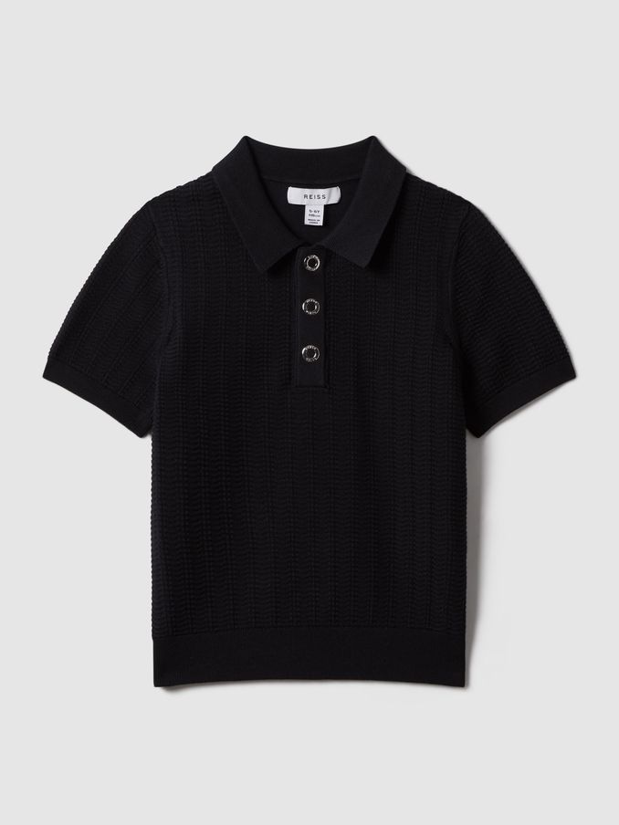 3-9 yrs Textured Modal Blend Polo Shirt in Navy