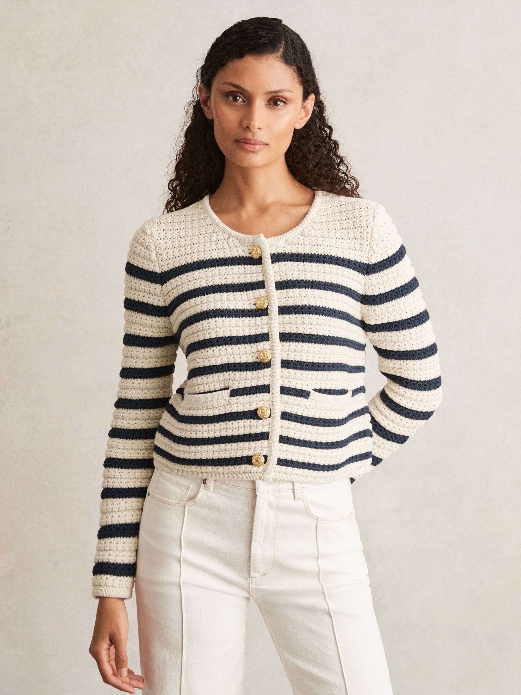 Paige Ivory Textured Knit Stripe Cardigan in Ivory
