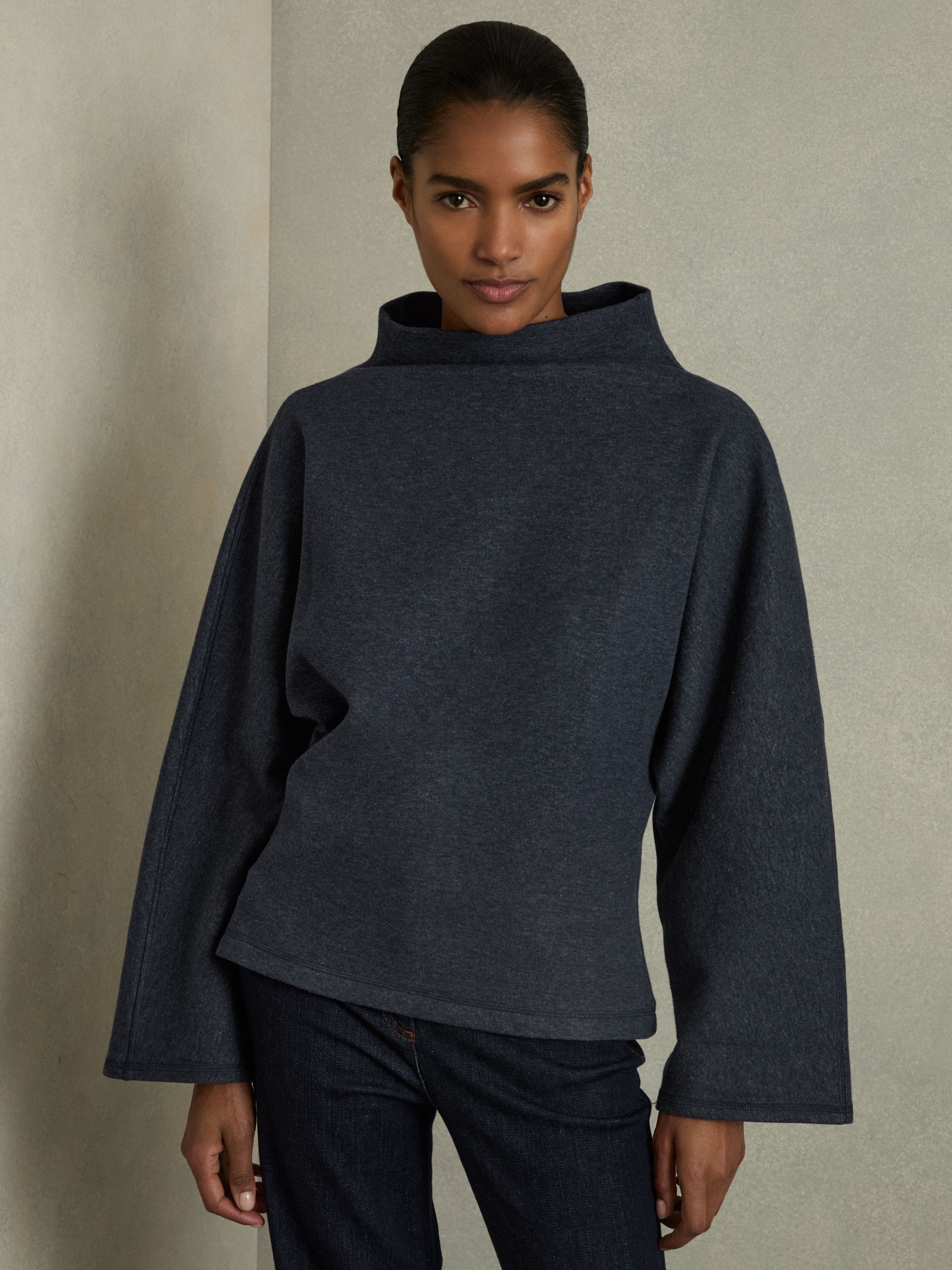 Cotton-Blend High-Neck Top in Navy
