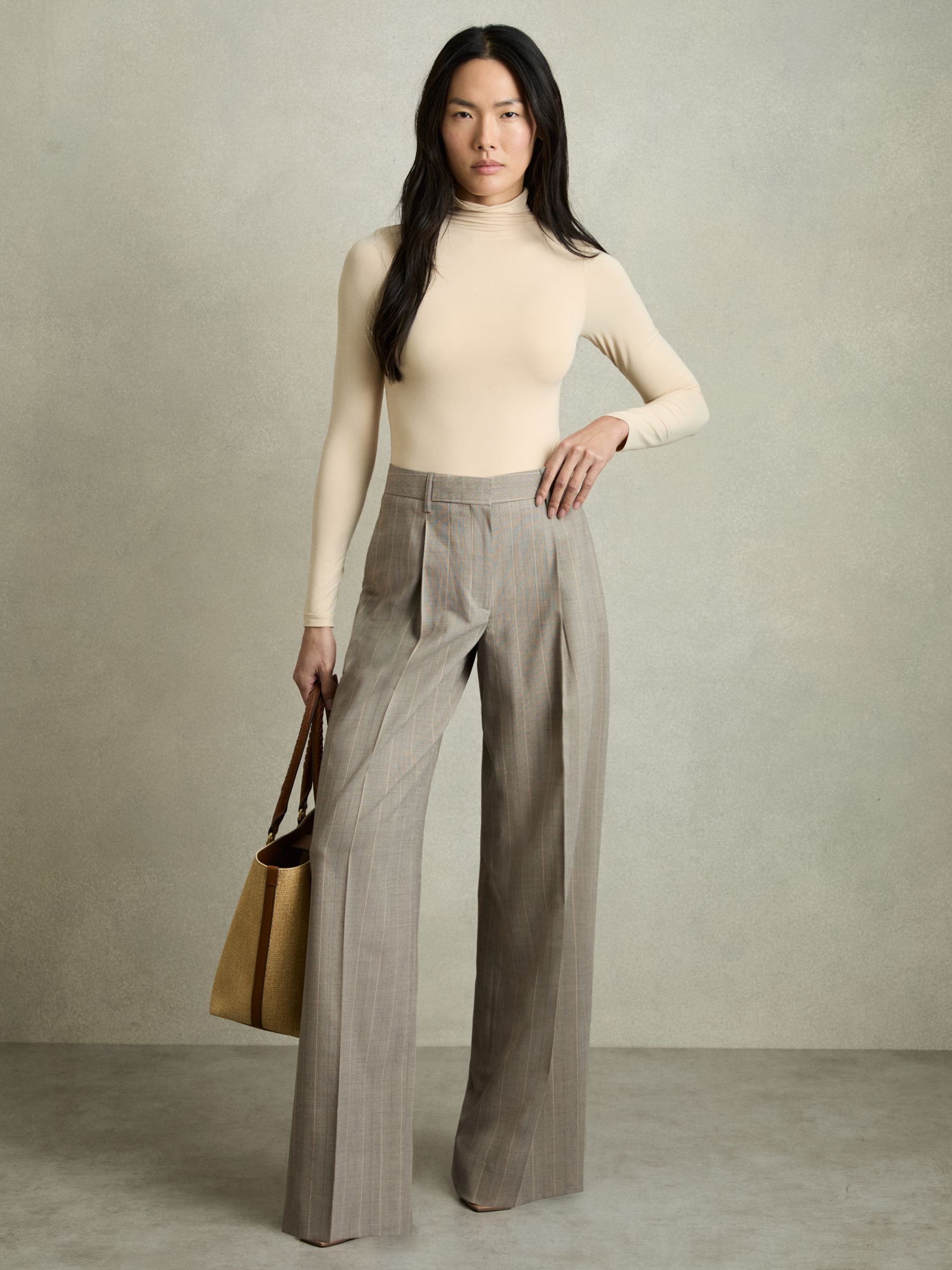 Wool-Blend Wide-Leg Pinstripe Trousers in Grey