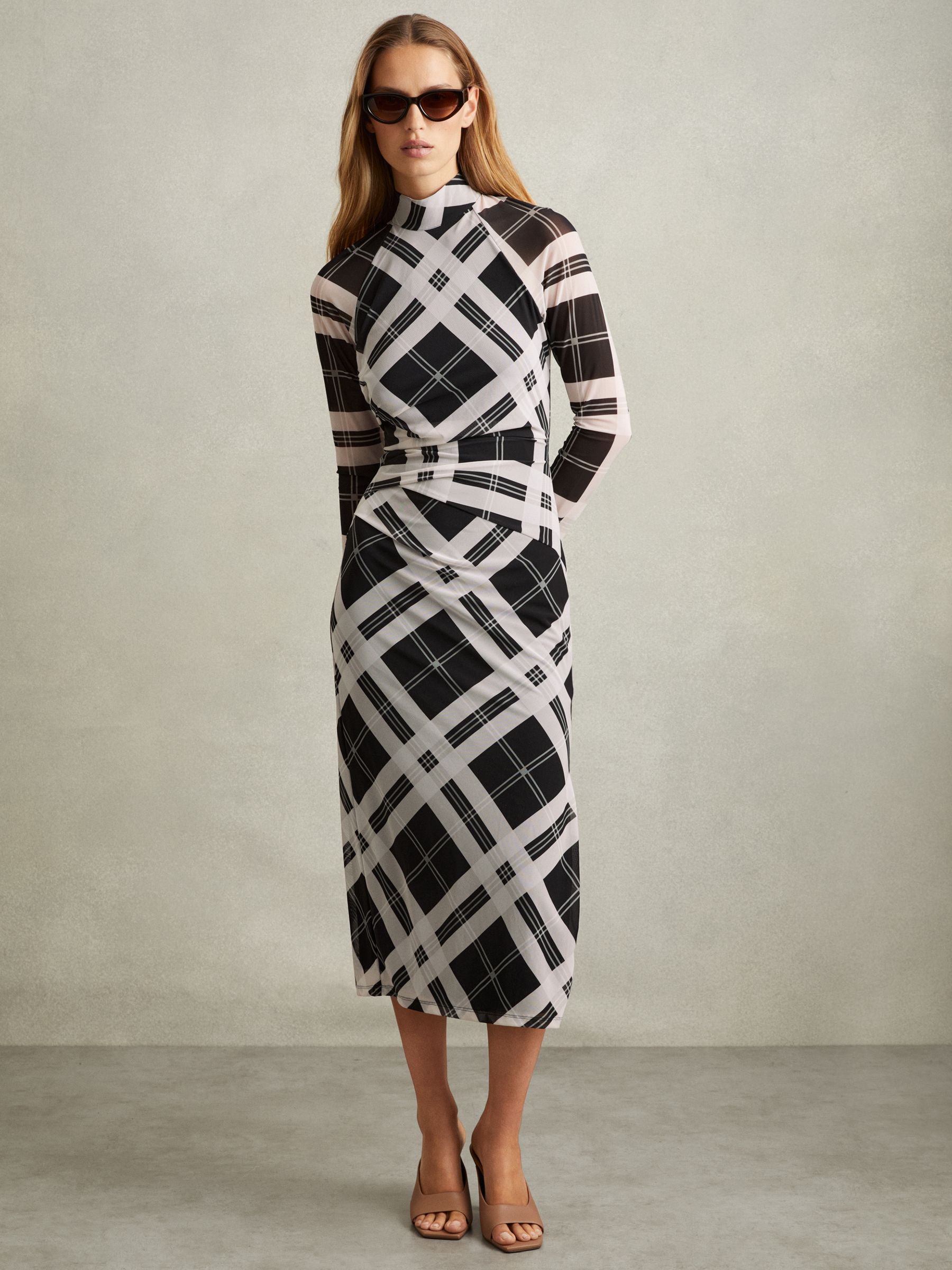 Darla Black/Ivory Checked Ruched Midi Dress