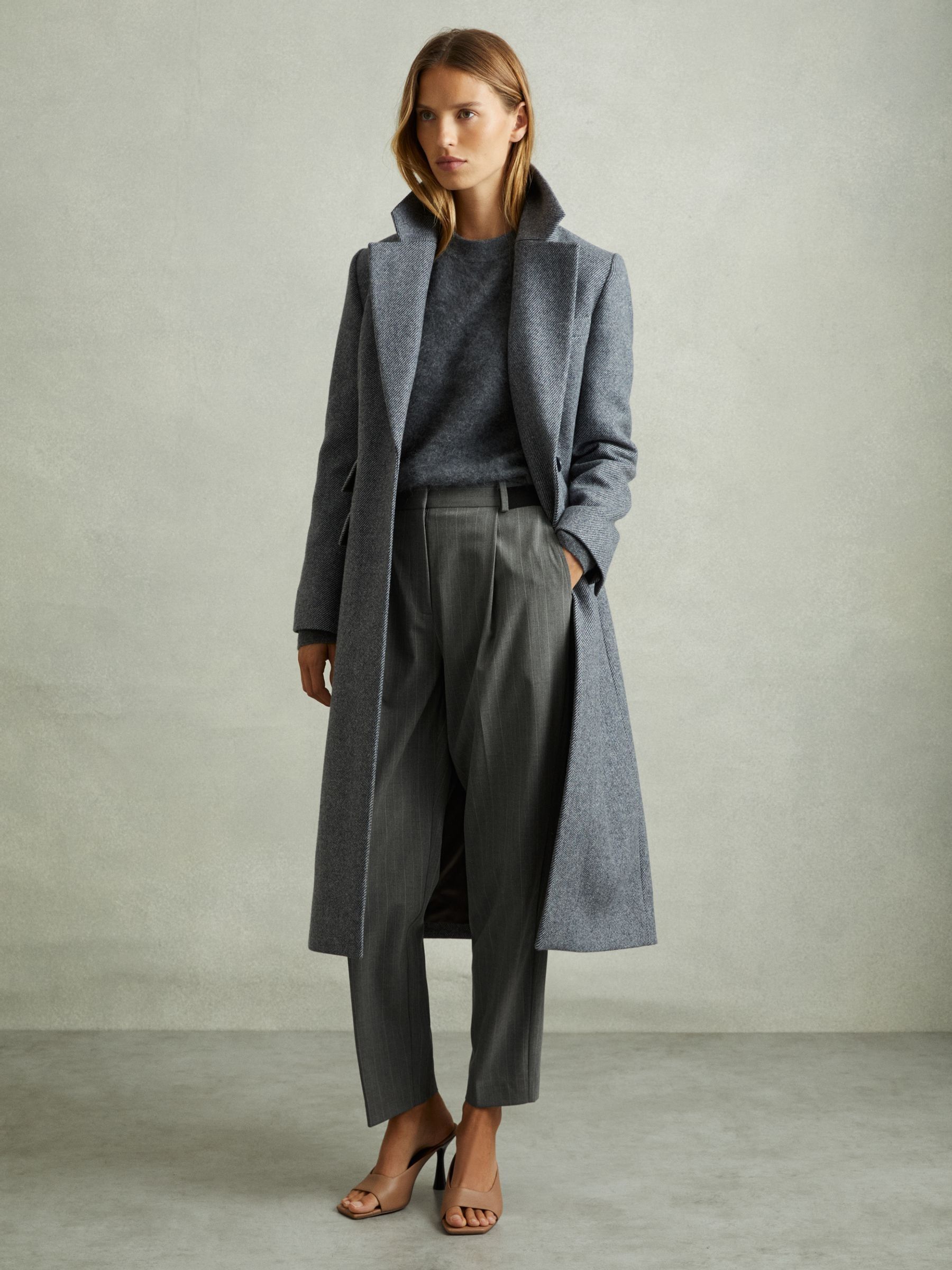 Pinstripe Waistband Detail Tapered Trousers in Grey