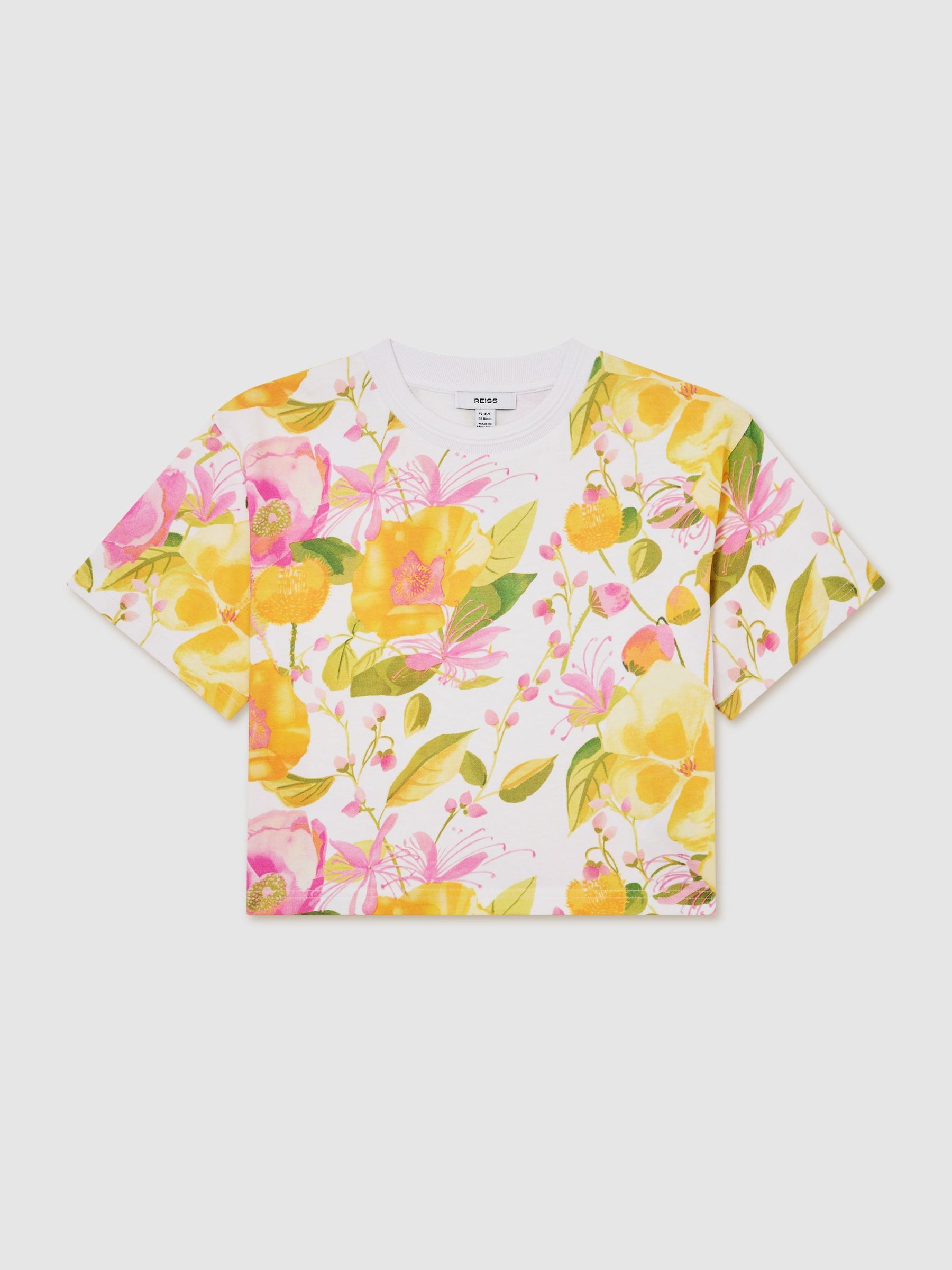 Cotton Floral-Print Relaxed T-Shirt in Ivory Print