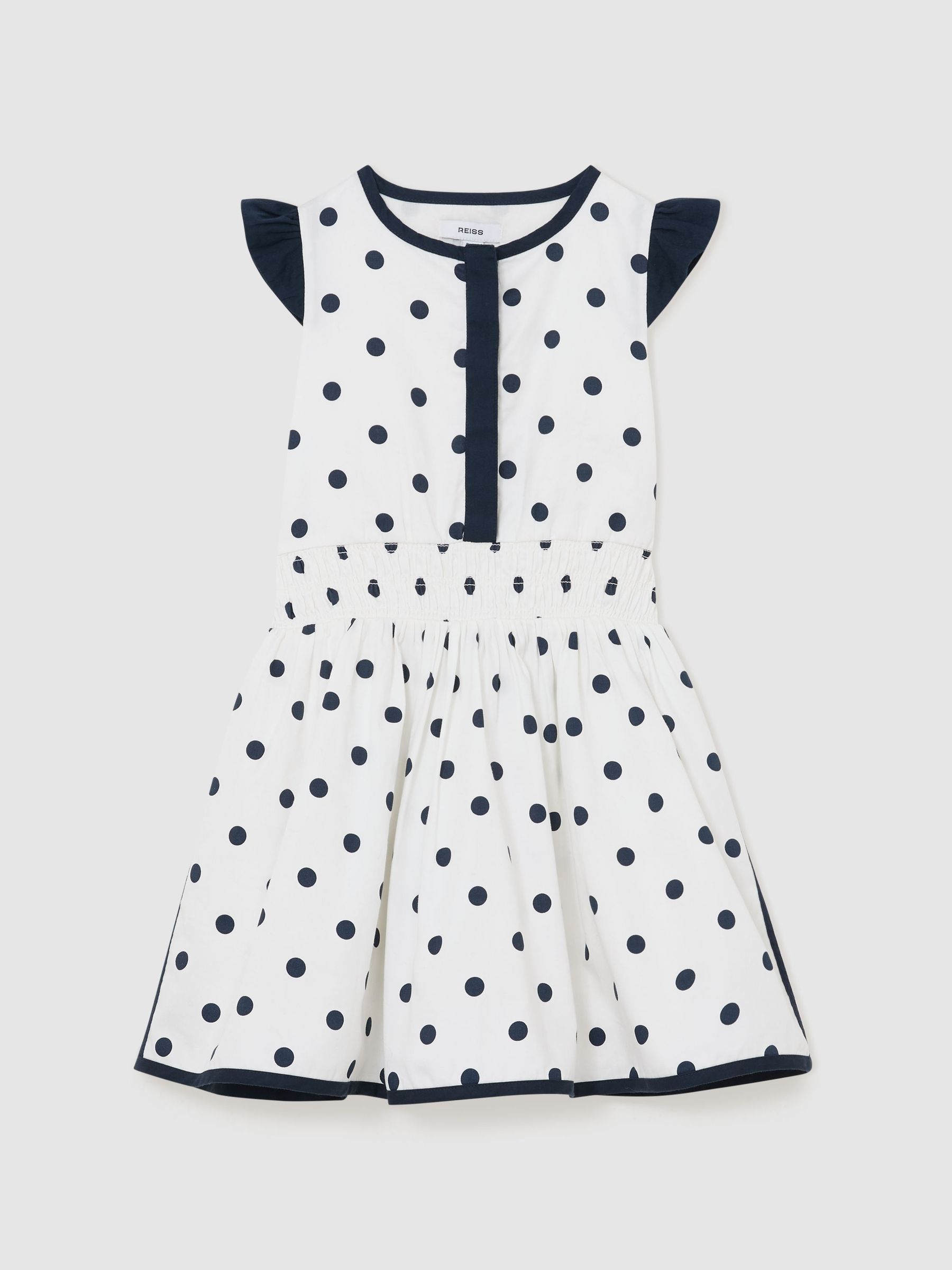 Cotton Polka-Dot Waisted Dress in Navy/White
