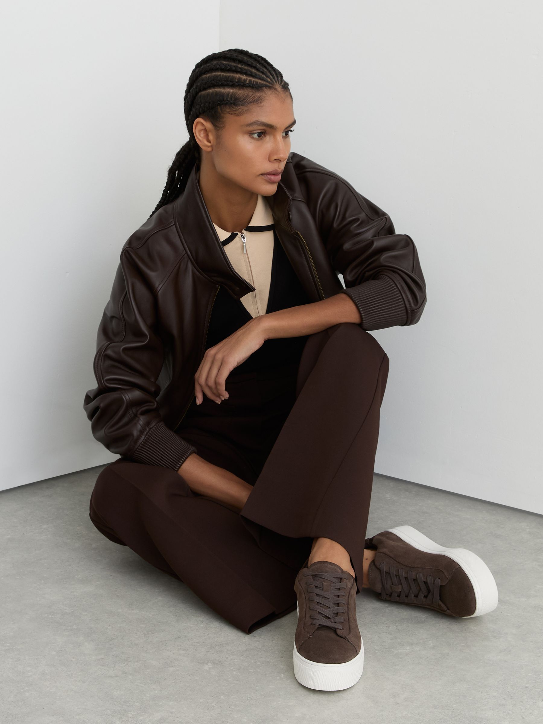 Leather Pointed-Toe Ballerina Shoes in Tan