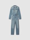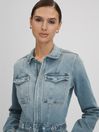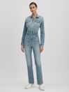 The Fit For Success Jumpsuit is cut from denim that allows slight stretch for comfort, into a straight-leg finish. A zip-front closure, multiple pockets, and side adjusters add practicality to style. Point collar Hidden zip-front closure Multiple pockets Side adjusters Straight leg Good American, curated by Reiss, is a collection designed to work perfectly with your existing Reiss wardrobe. Innovative, solution-led denim and lifestyle garments champion inclusivity, enhance curves and represent body acceptance. By women, for women.