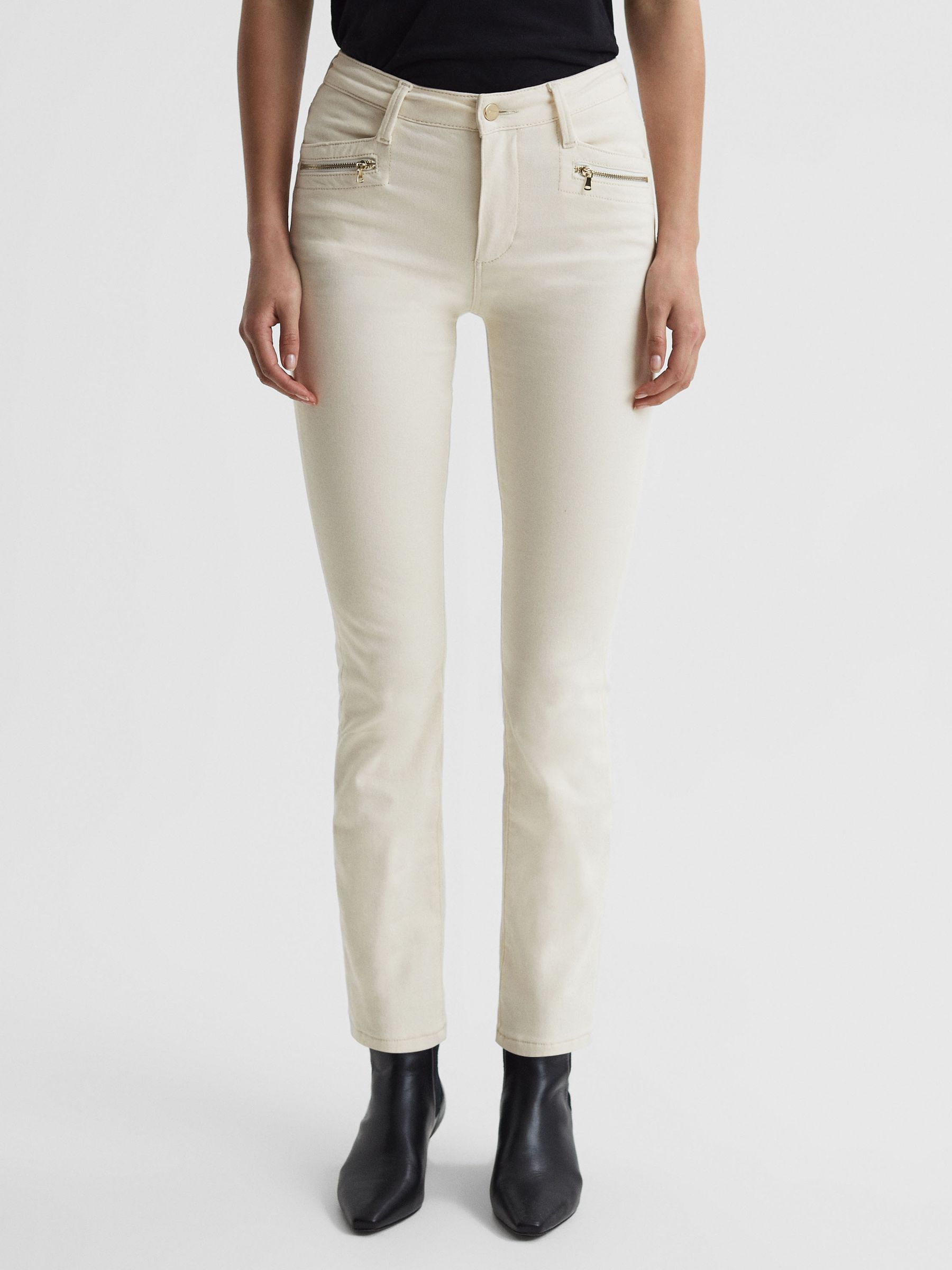 Paige High Rise Straight Leg Jeans in Ecru