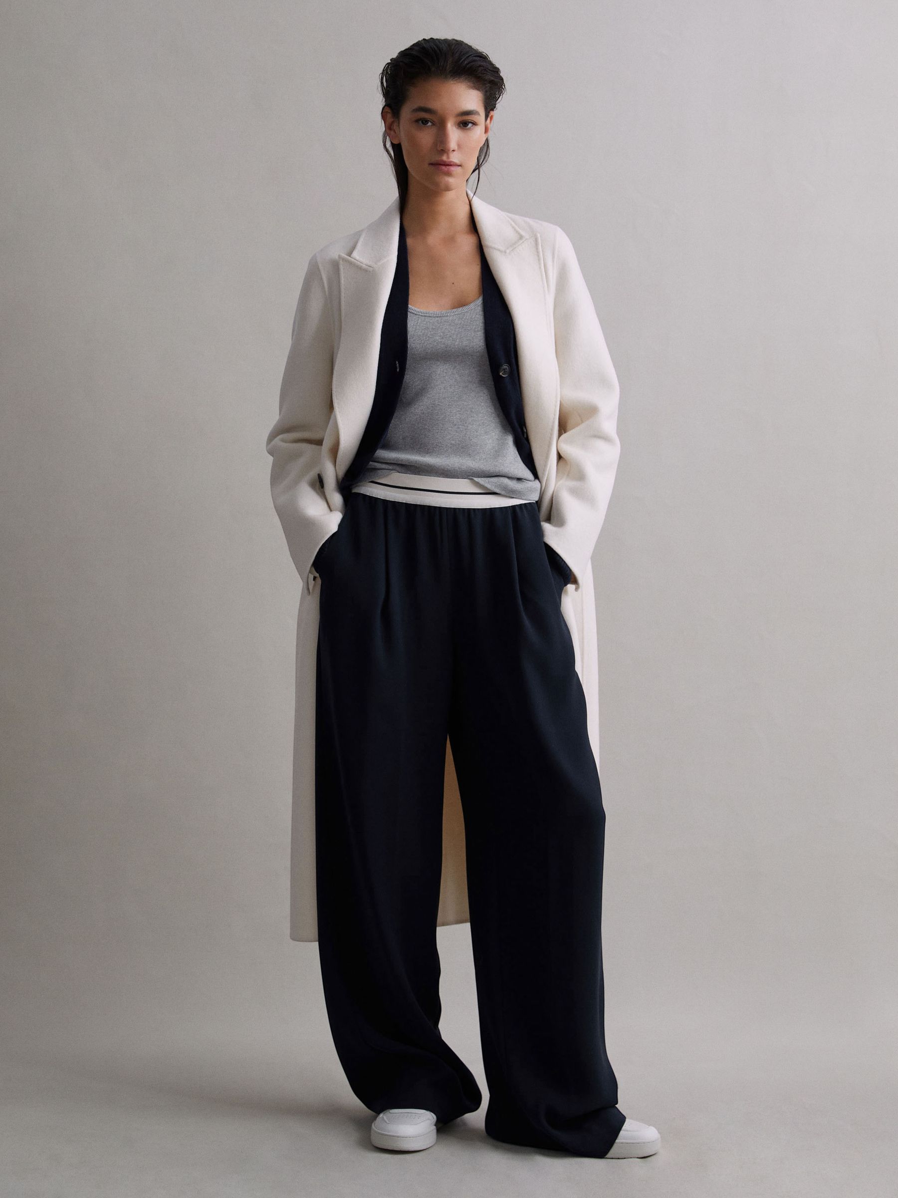 Wool-Blend Pinstripe Wide-Leg Trousers in Navy