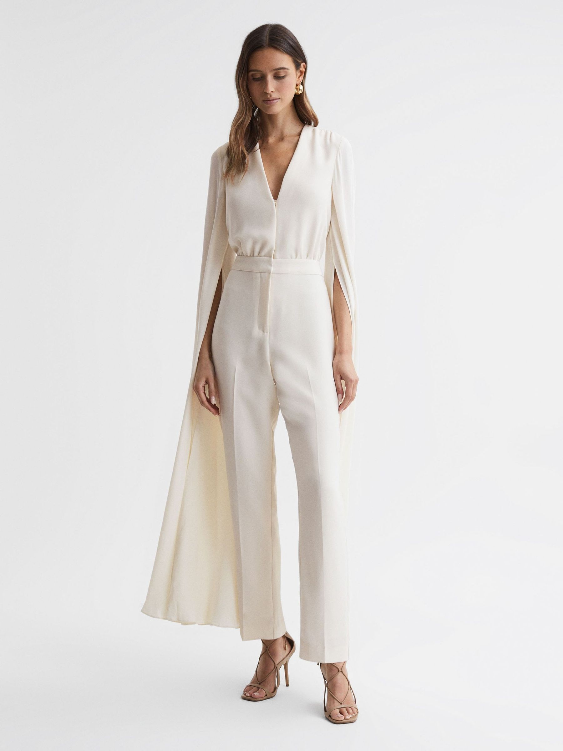 Cape Sleeve V-Neck Jumpsuit in Ivory