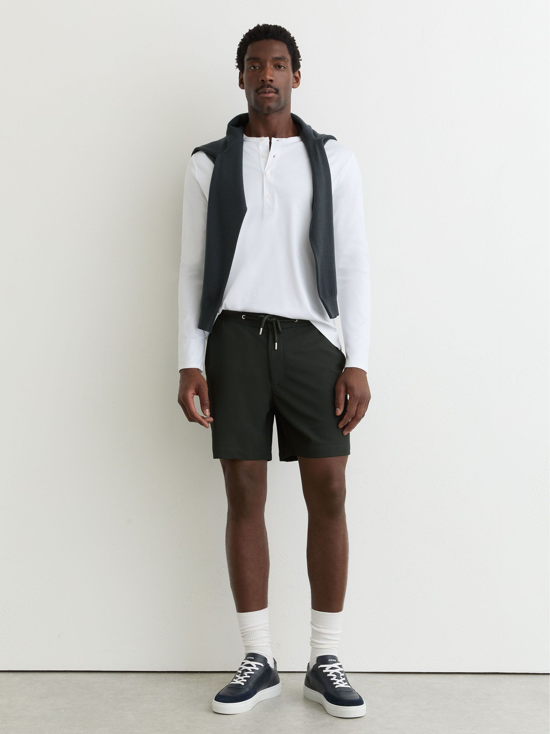 Textured Drawstring Shorts in Dark Green