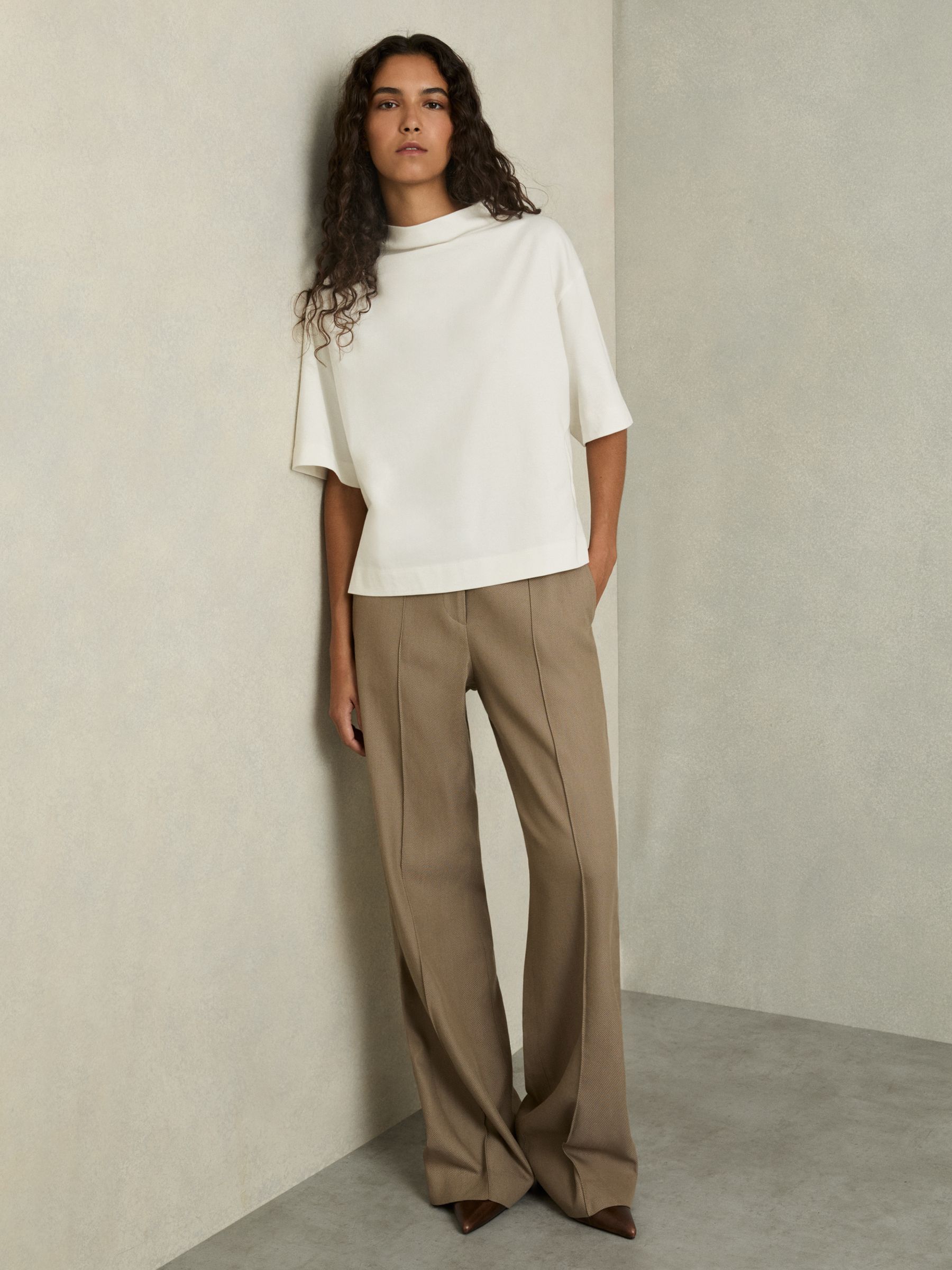 Cotton-Blend Interlock Collar Sweatshirt in Camel