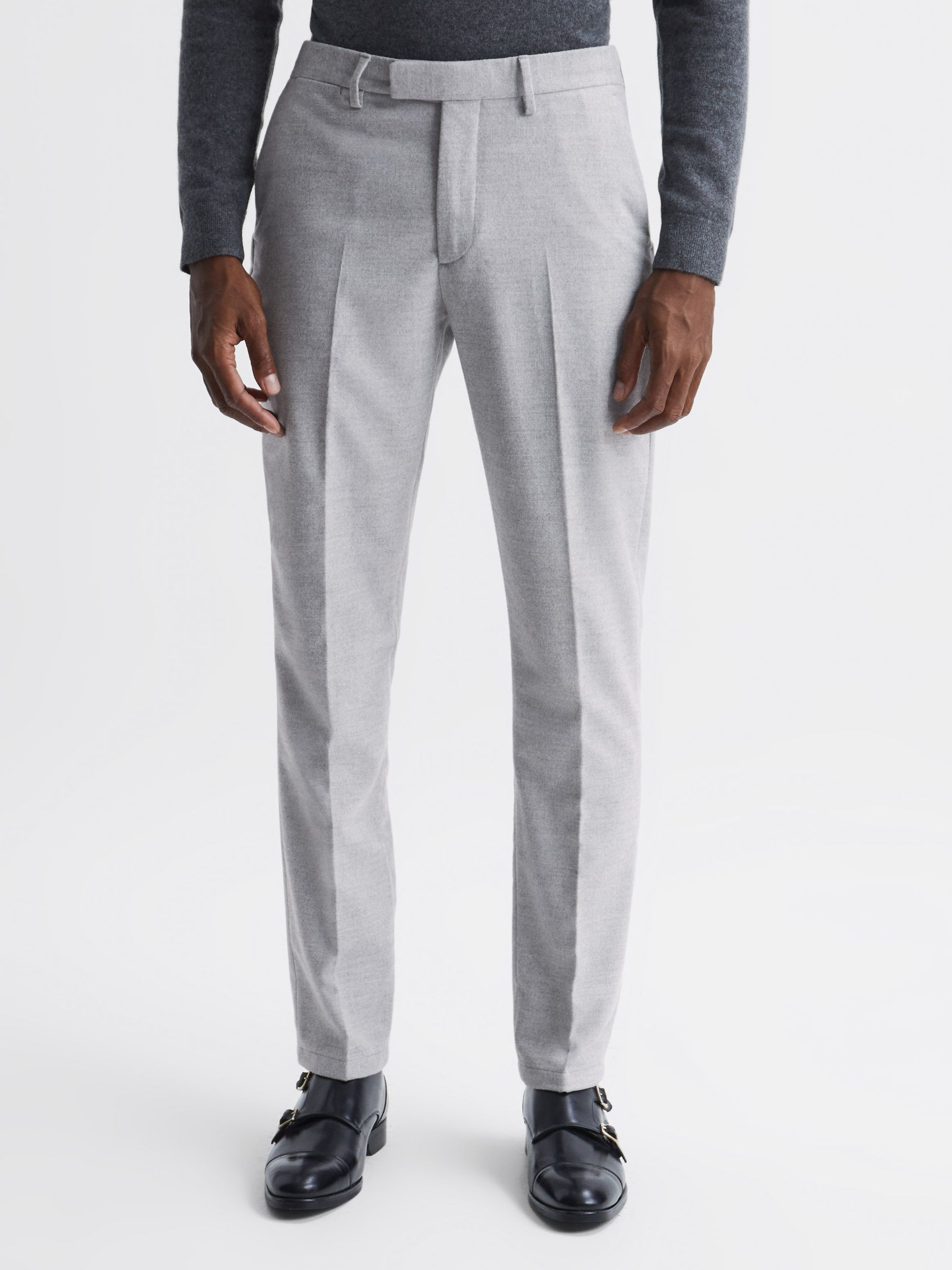 The Lungo slim-fit trousers have a narrow fit through the leg and taper at the knee to a slim hem opening; resulting in a sharp and modern look. A versatile staple for all wardrobes, they look as good paired with a shirt and brogues as they do with knitwear and trainers. Brushed finish Subtle stretch Zip fly and hook closure Belt loops Pressed creases Slim fit The model is wearing a size M. Measurements of model: Height 6ft 2.5'' / 189cm. Regular inside leg length 32.5" / 82cm.