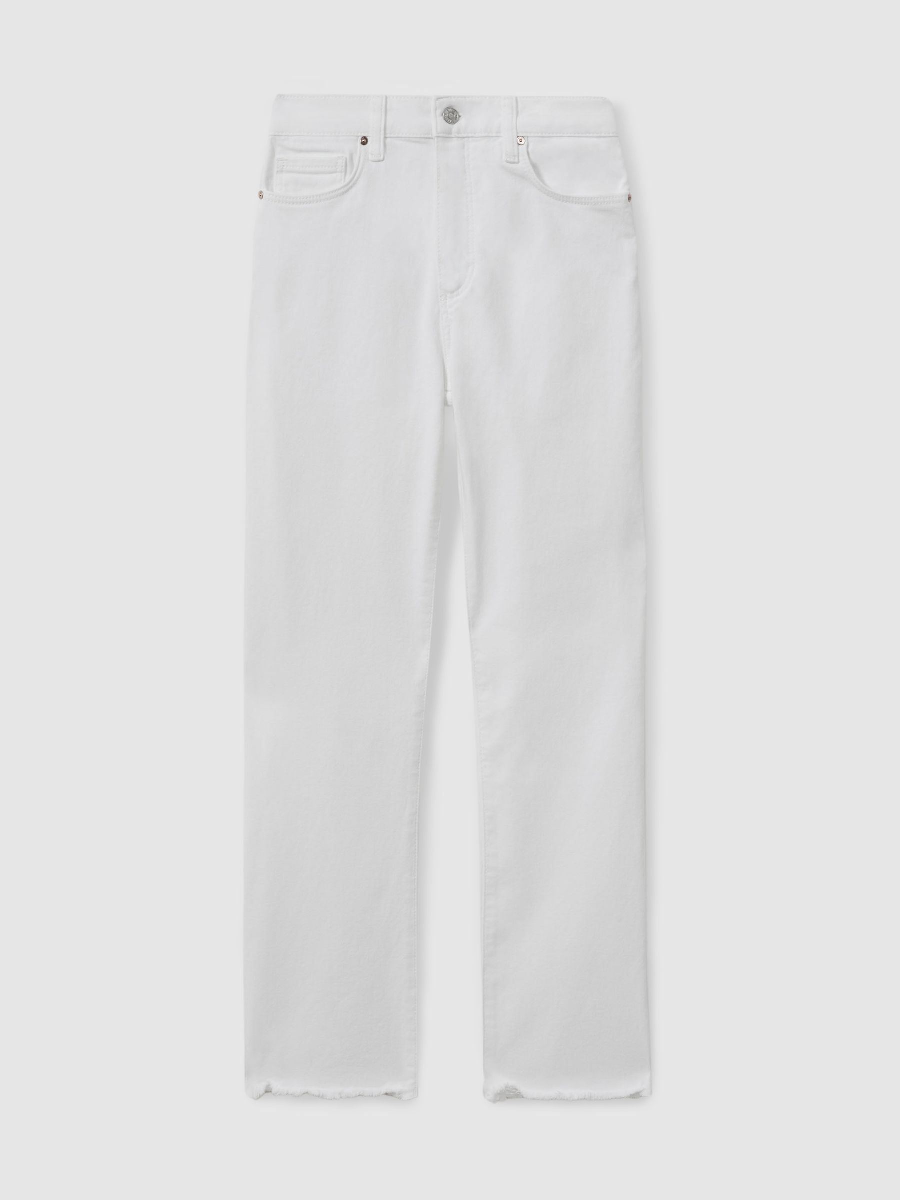 Cindy White Paige Straight Leg Raw Hem Jeans