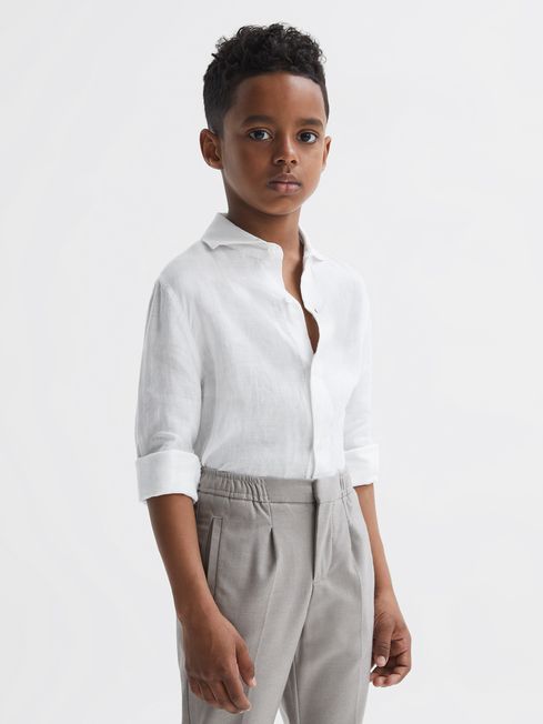 6.12.1 9-13 yrs Linen Cutaway Collar Shirt in White | REISS Switzerland Click here to use our website with more accessibility support, for example screen readers