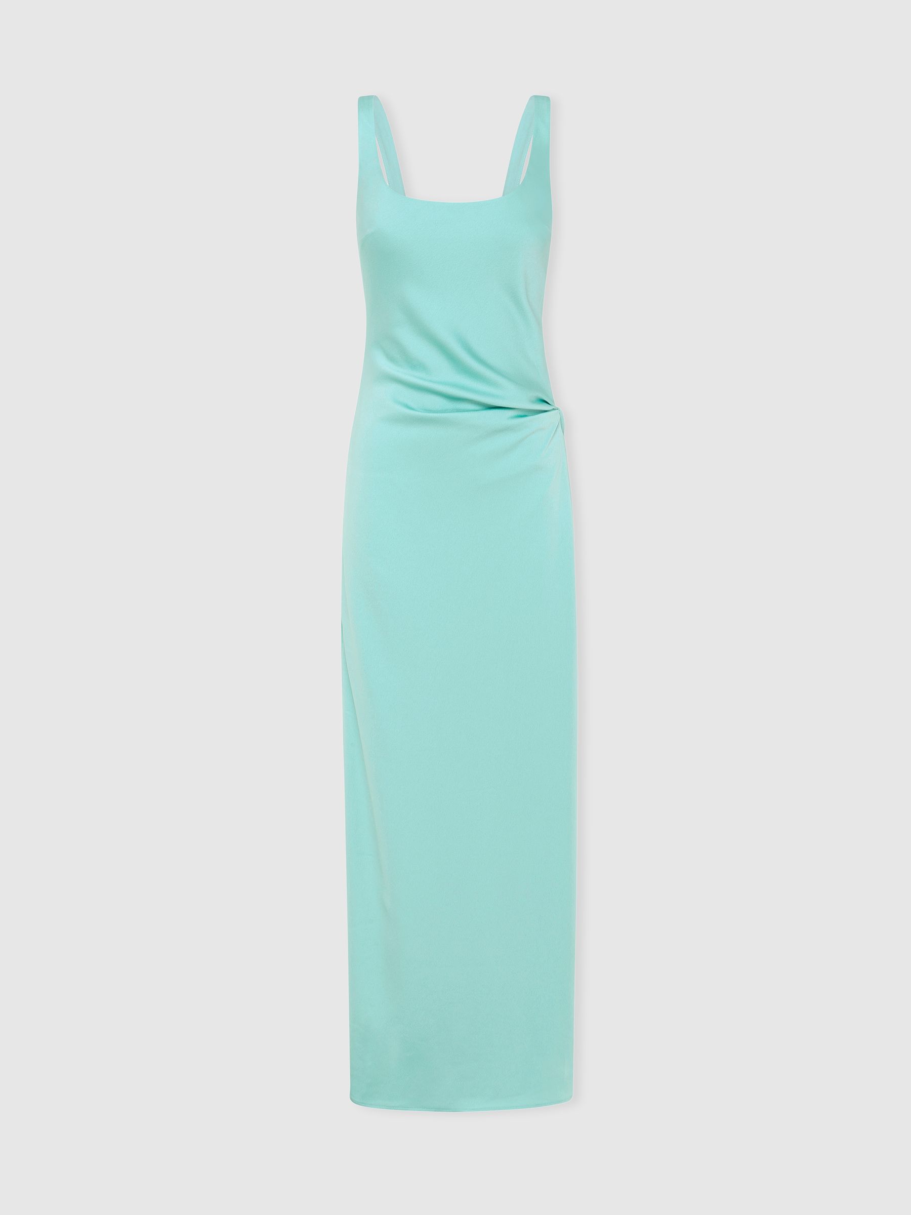 Etta Teal Anna Quan Satin Side Split Maxi Dress