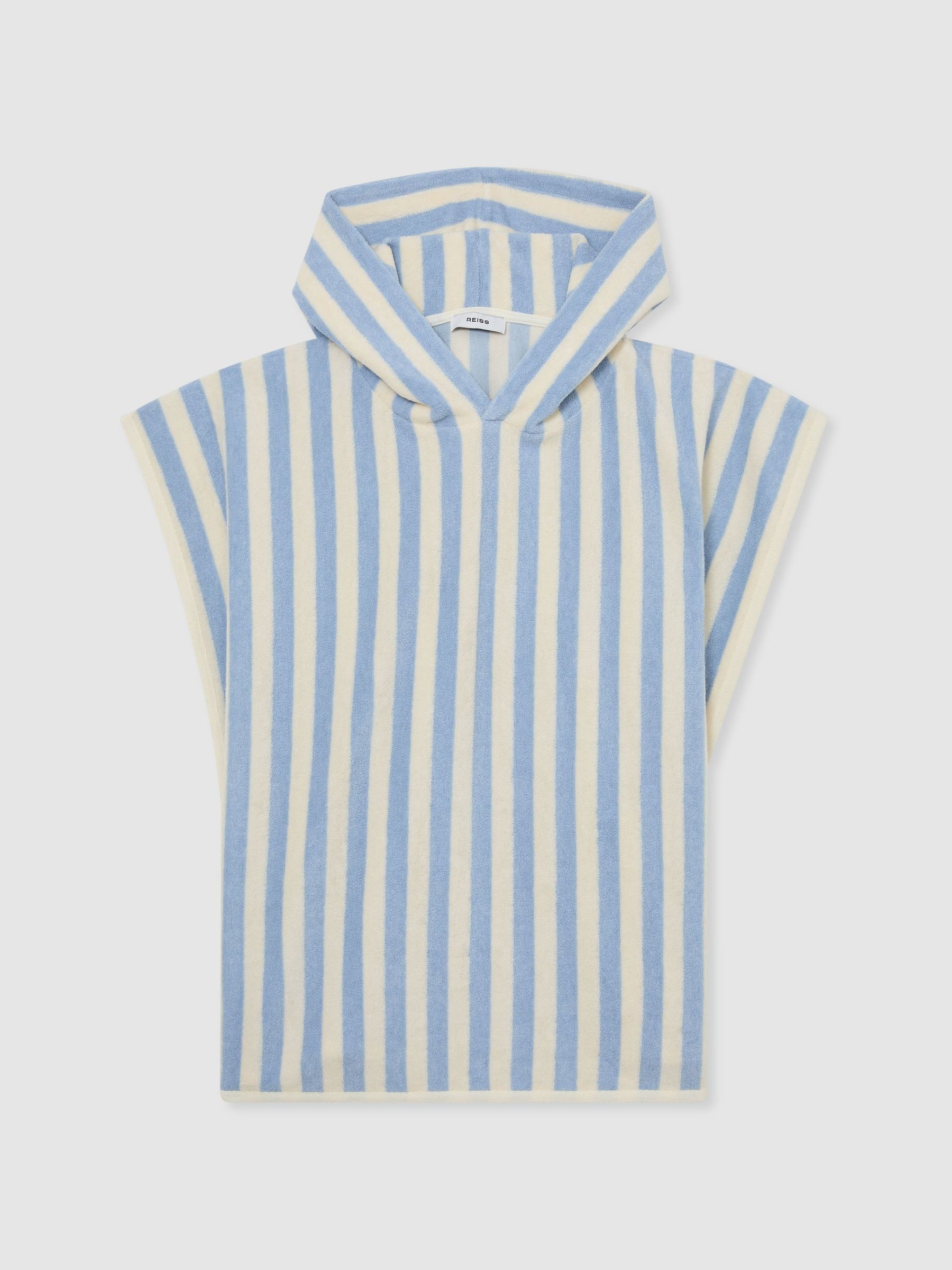 9-13 yrs Striped Hooded Towel Cape in Pale Blue