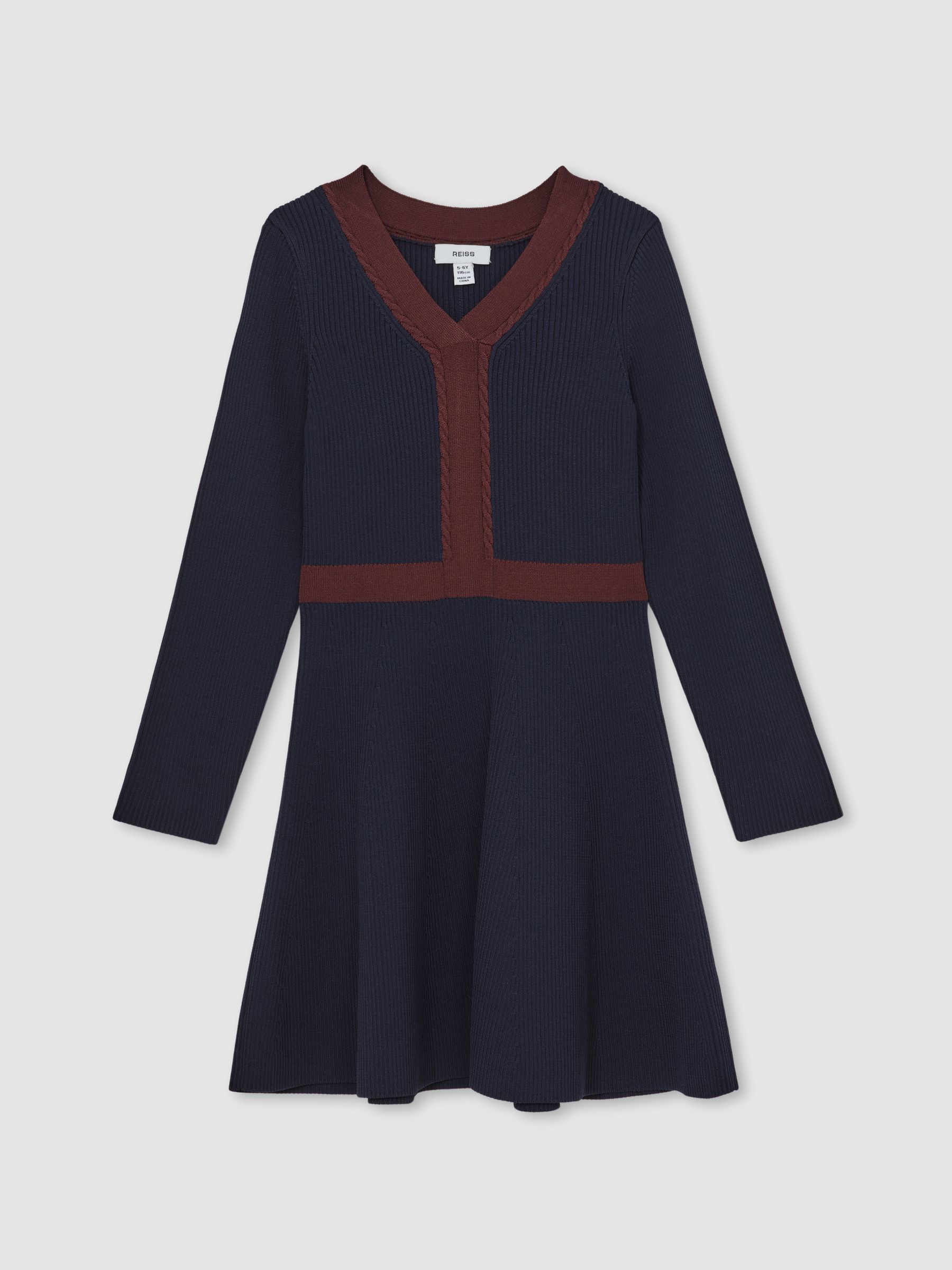 13-14 yrs Craft-Stitch Rib-Knit Dress in Navy