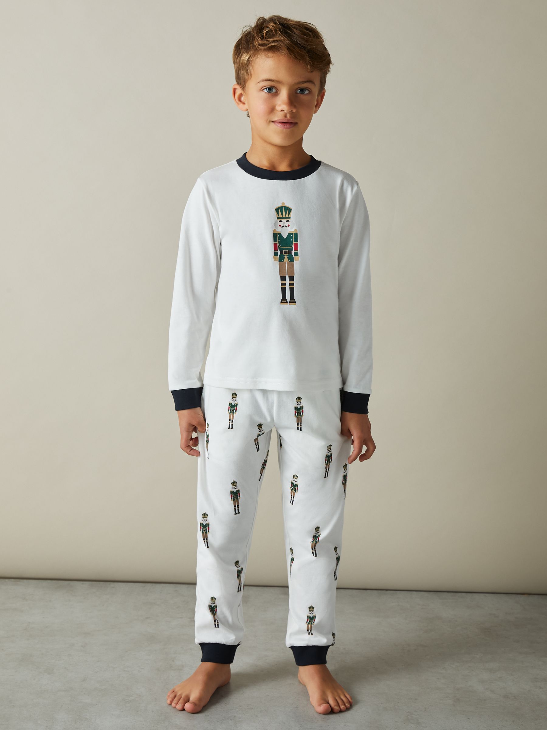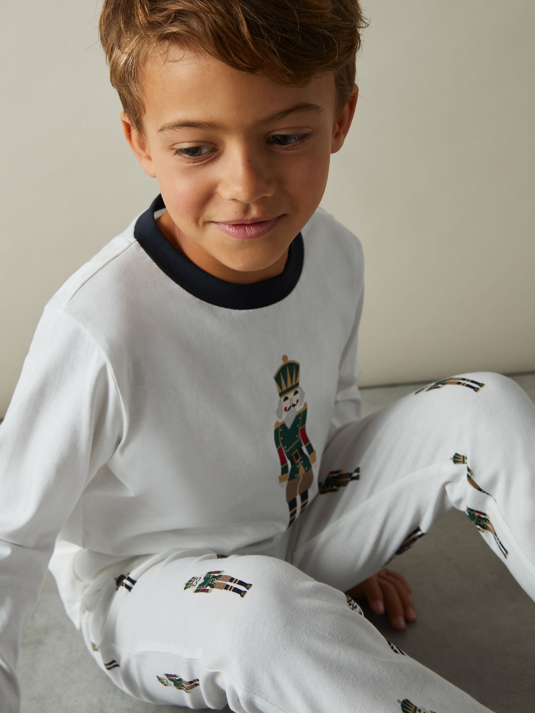 9-13 yrs Brushed-Cotton Nutcracker-Print Pyjama Set in White