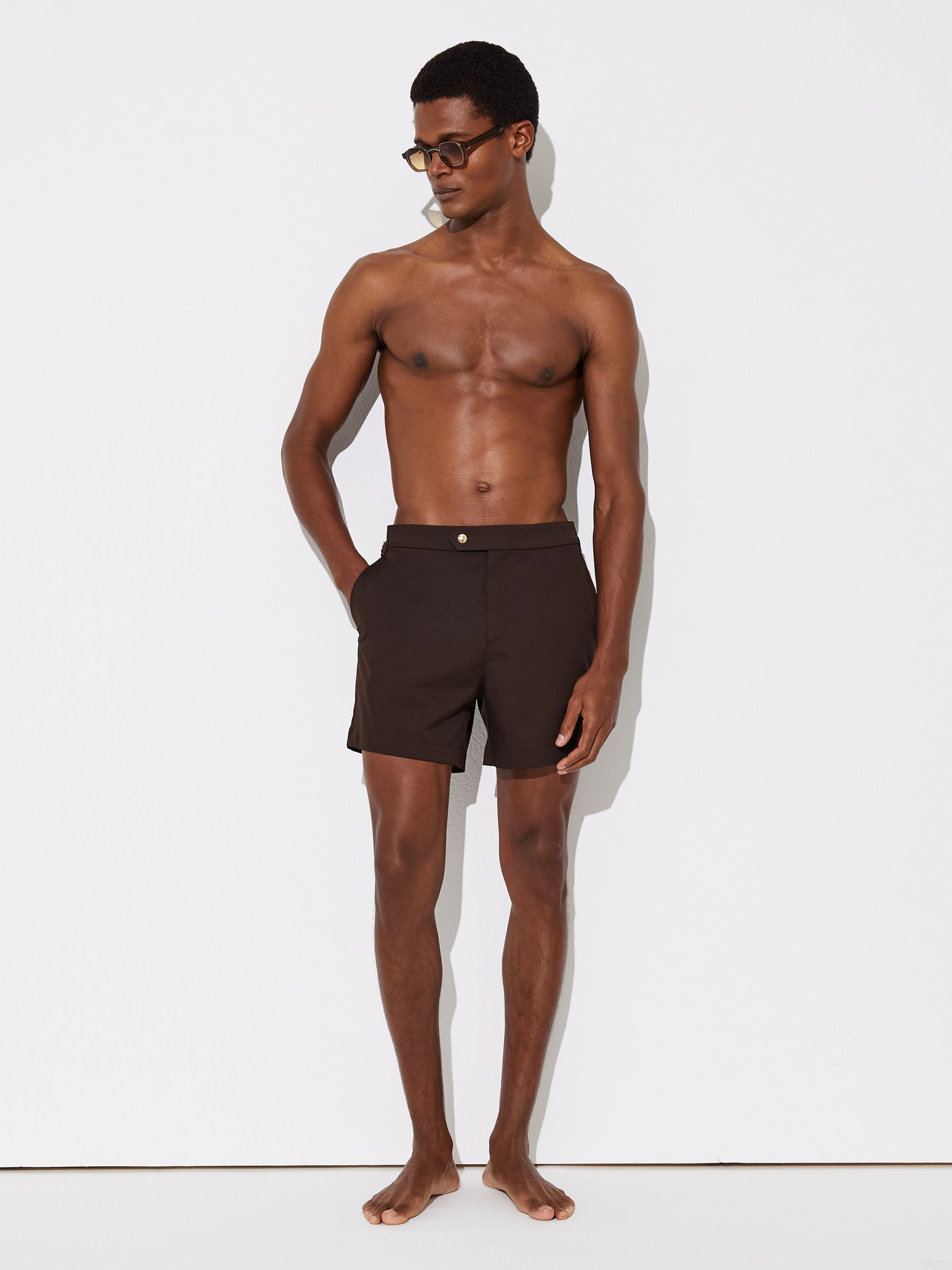 Side-Adjuster Swim Shorts in Chocolate Brown