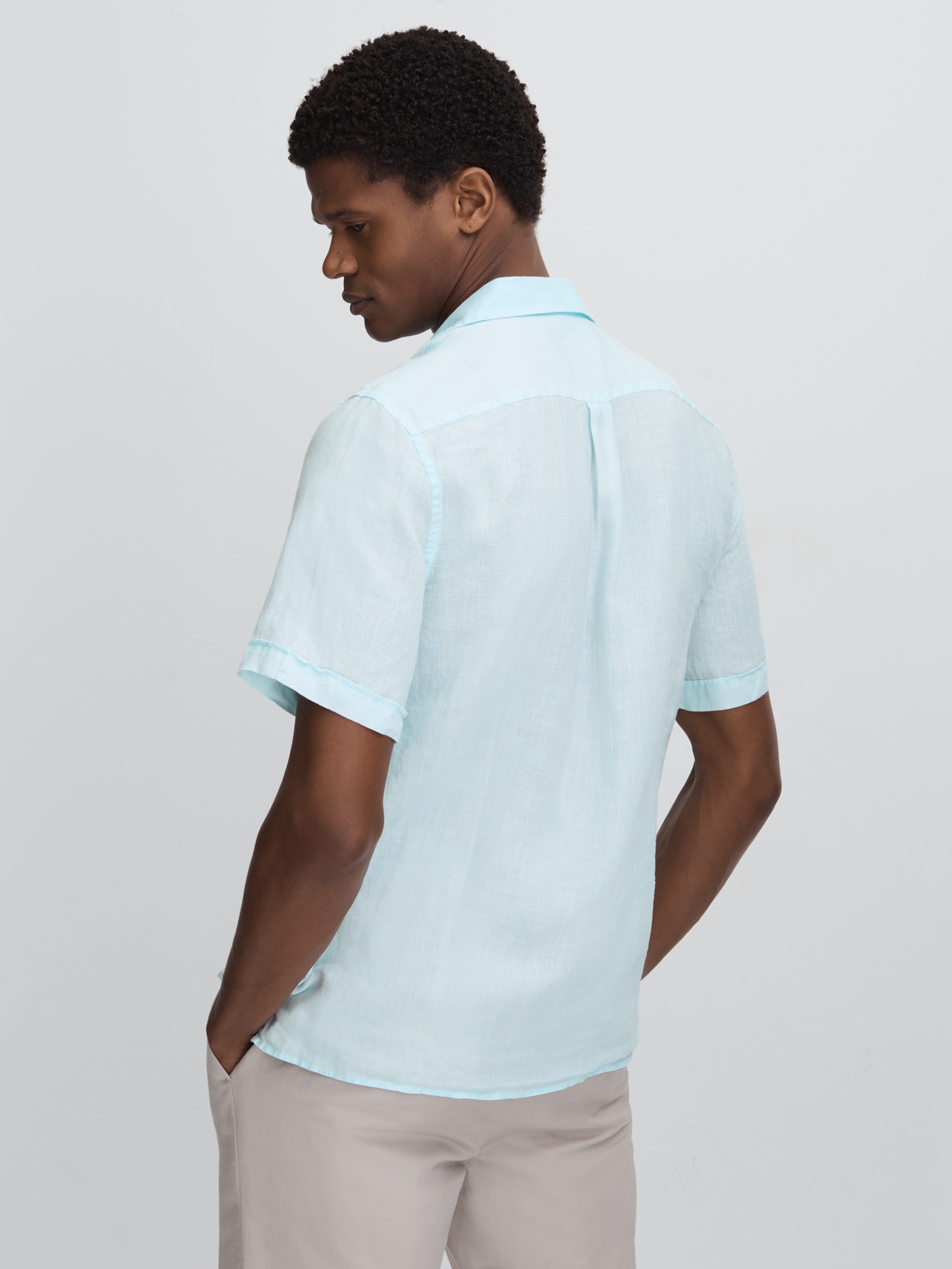 The Charli short-sleeved shirt in the Thalassa blueprint is made from lightweight linen. Its Cuban collar is fitted with a button so it can be fastened to suit your preference. An embroidered motif features on the hem as an understated style note. 100% linen Cuban collar Short sleeves Button-front closure Embroidered motif to hem Vilebrequin, curated by Reiss, is a French swimwear brand inspired by stylish beach living, vibrant vacationers, and functional design. Ever-evolving yet always classic.