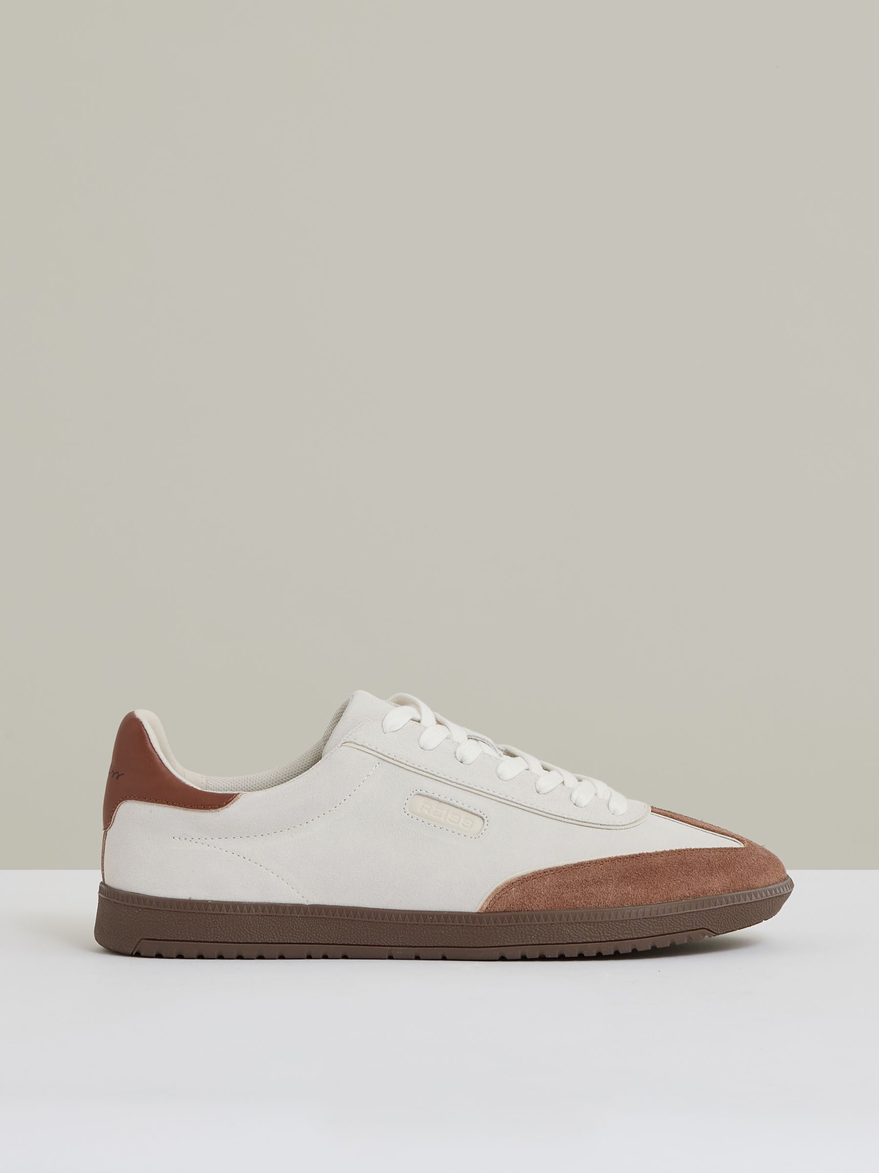 Bonded-Leather Mid-Top Skater Trainers in Charcoal Grey/Dark Beige
