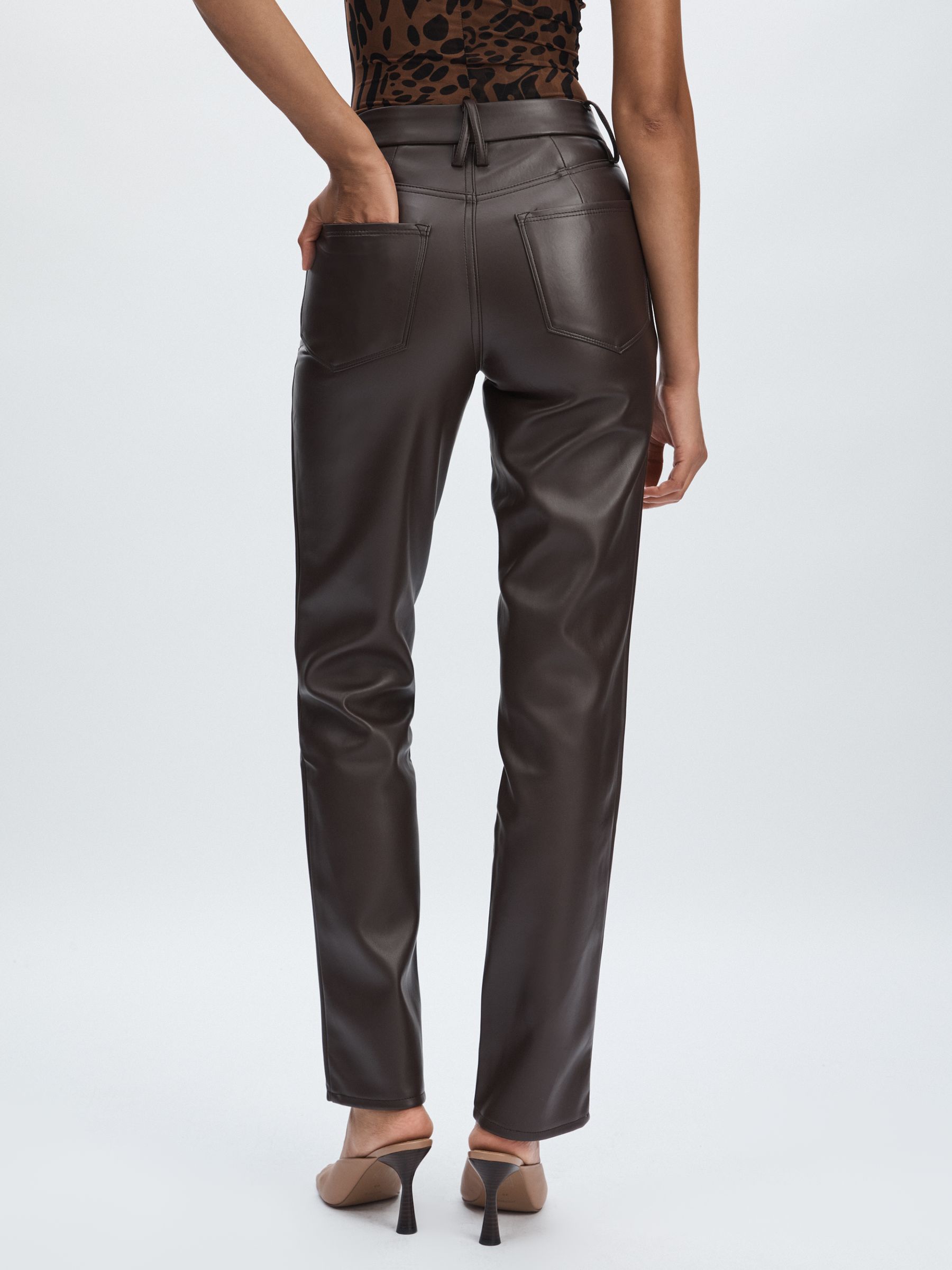 Good American Faux-Leather Straight-Leg Trousers in Black/Brown