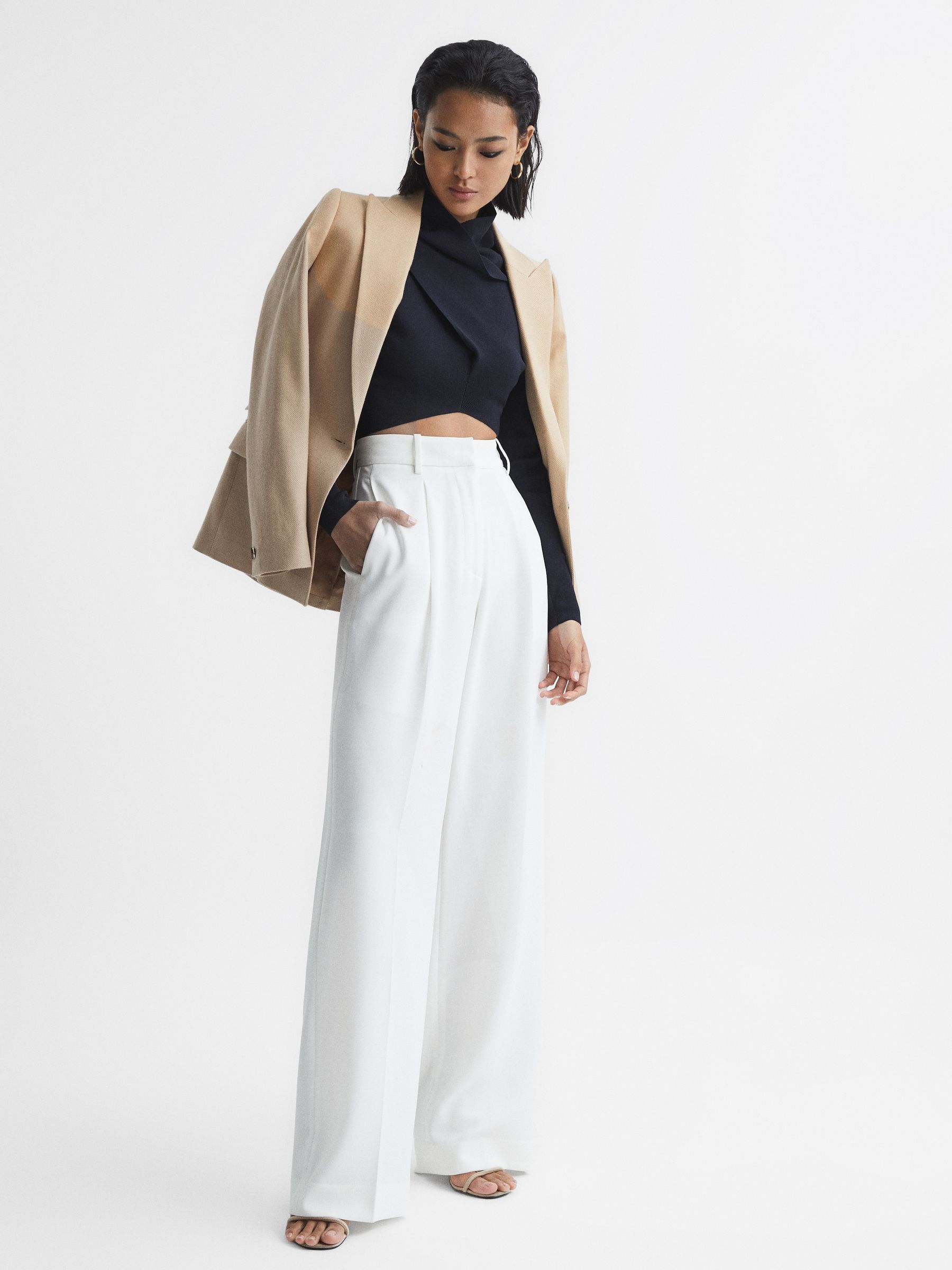 The navy Elsie top embraces experimental design, cut in a split shawl collar for a chic finish. It's made with long, form-fitting sleeves and a cropped hemline that's shaped to a chevron profile. Cross-over shawl collar Long sleeves Cropped Ribbed The model is wearing a size 8. Measurements of model: Height: 5ft 11.5'' / 181cm.
