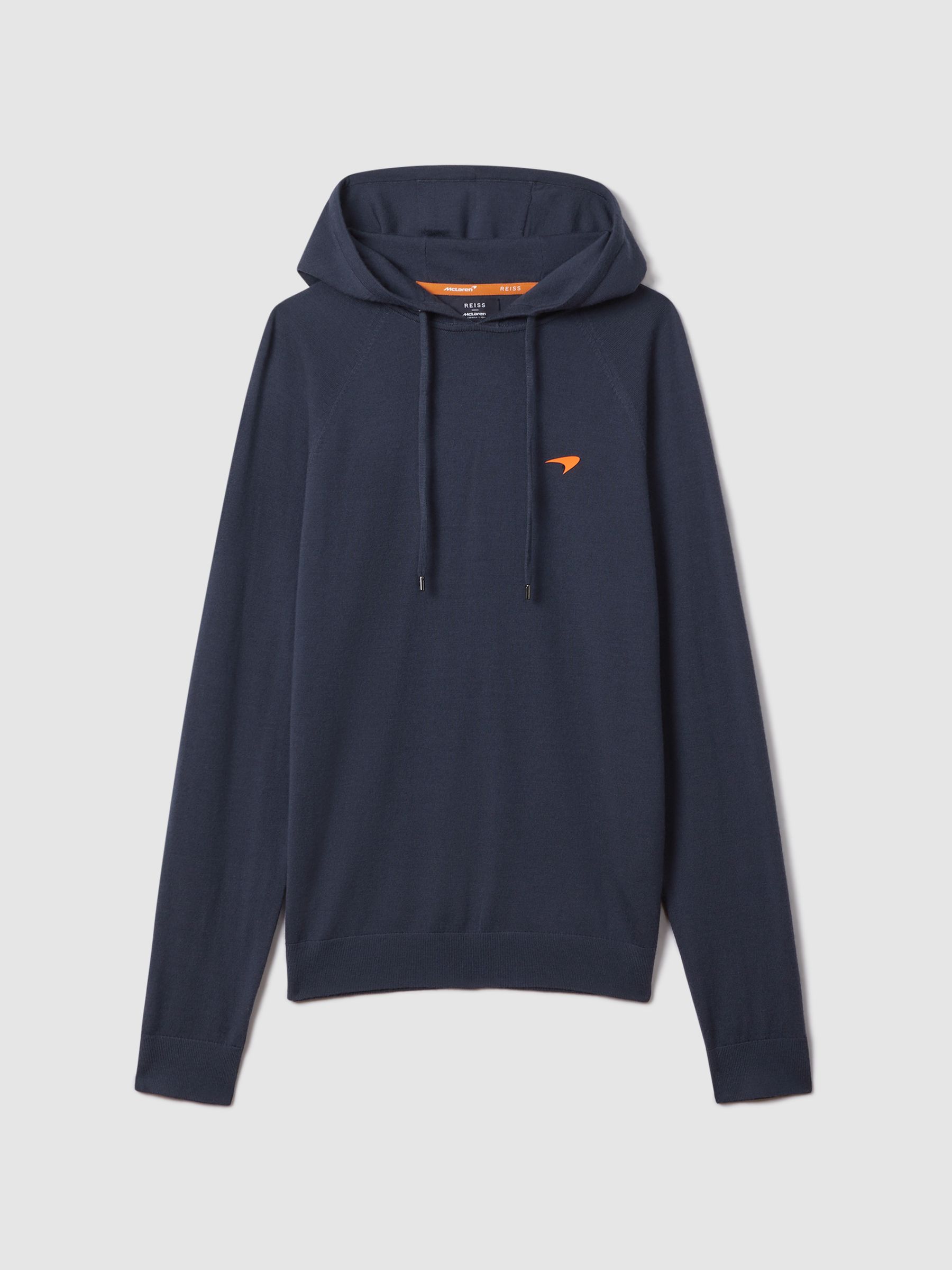 Knitted in a fine gauge for an ultra-soft lightweight wear, the Airforce Blue merino wool Mitford hoodie is designed with McLaren Formula 1 branded drawstrings and raglan sleeves. Merino wool Drawstring hood Raglan sleeves McLaren F1 Speedmark logo McLaren F1 branding to hood McLaren F1 branded side tag Introducing Reiss x McLaren Formula 1 Team Collection, our exclusive collaboration with McLaren Formula 1 Team. The model is wearing a size M. Measurements of model: 6ft 2'' / 188cm.