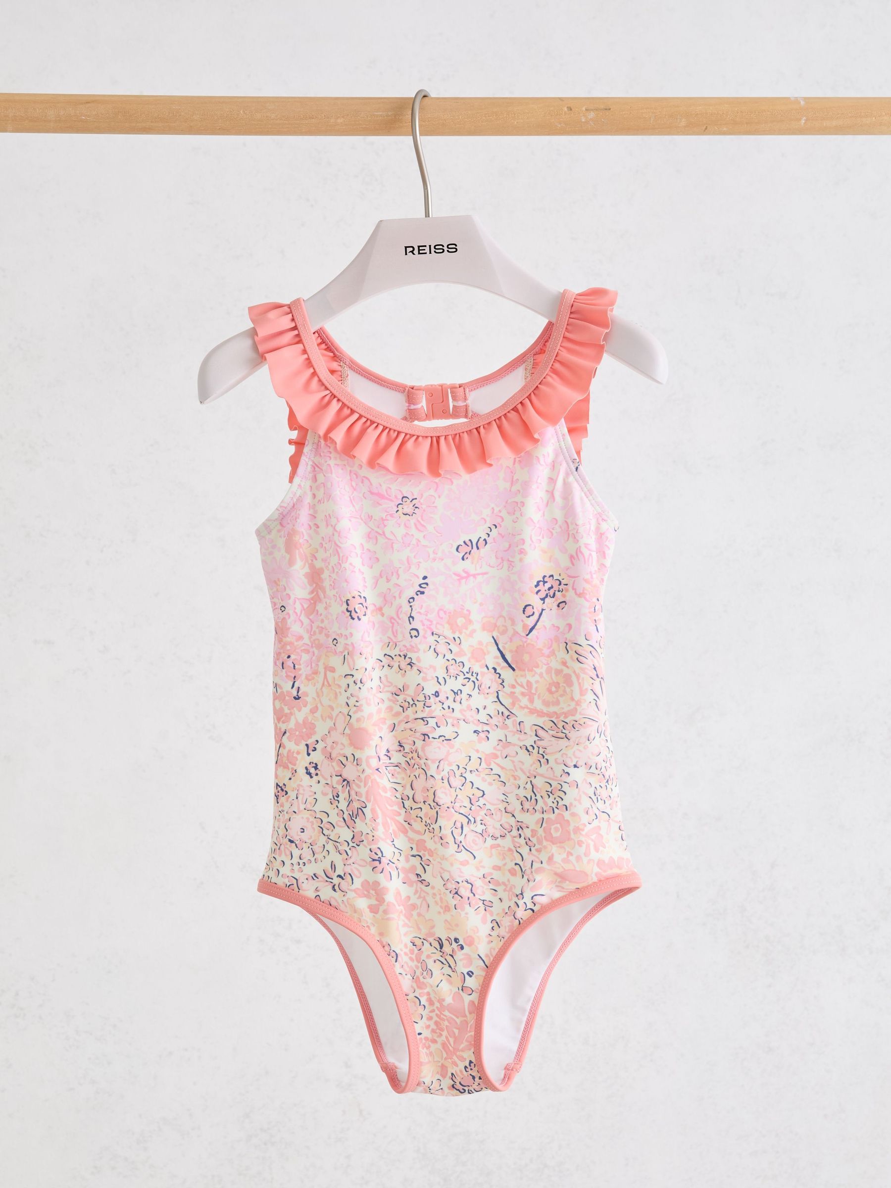 Floral-Print Frill-Trim Swimsuit in Pink Print