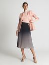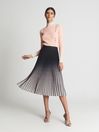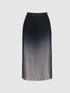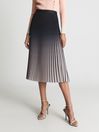 The Marlie knife-pleat skirt is designed with an ombré print in cream and black. It sits to a high-waist profile and falls to a chic midi length, making it a versatile wear with knitwear and heels. Ombre design. High rise. Midi length. Knife-pleat design. Zip fastening. The model is wearing a size 8.