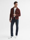 Paige applies fabric technology, expert fit know-how and a Los Angeles style sensibility to create unique pieces. This season, a selection of Paige styles were curated to work best with Reiss looks. Refresh your everyday classics collection with the Federal straight-leg jeans. They’re crafted from a high-stretch fabrication for comfort and cut into a slim fit. A dark wash finishes the look. Style with trainers and a casual t-shirt. Five-pocket styling. Zip fly and button closure. Straight leg. Slim fit. The model is wearing a size 32 Measurements of model: 6ft 2" / 188cm.
