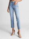 PAIGE applies fabric technology, expert fit know-how and a Los Angeles style sensibility to create unique jeans. Cindy is cut to a high-rise with a straight leg. This pair comes in a versatile pale blue with silver-shaded hardware. Cut from PAIGE’s ultra-stretch denim, this style has the look of authentic vintage denim and remains comfortable with shape recovery. High rise. Straight leg. PAIGE branding. Zip fly. Button closure. Front Rise: 10 1/2 . Inseam: 28 . Leg Opening: 14". High rise. Slim fit. PAIGE branding. Zip fly .
