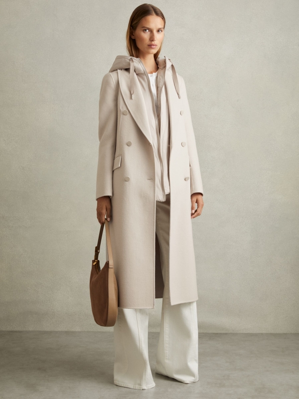 Wool-Blend Double-Breasted Blindseam Coat in Neutral