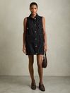 The Brooklyn shift dress is crafted from denim with a sleeveless, mini silhouette for a casual yet timeless look. Button-flap patch pockets add a touch of utility, while front buttons enhance its classic appeal. Denim Shift style Button flap patch pockets Button tabs at hem Front buttons Mini The model is wearing a size S. Measurements of model: Height 5ft 10'' / 177.8cm. Regular side neck to hem 34" / 86cm.
