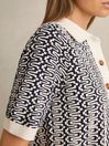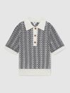 Zig-Zag Knit Polo Shirt in Blue/Ivory