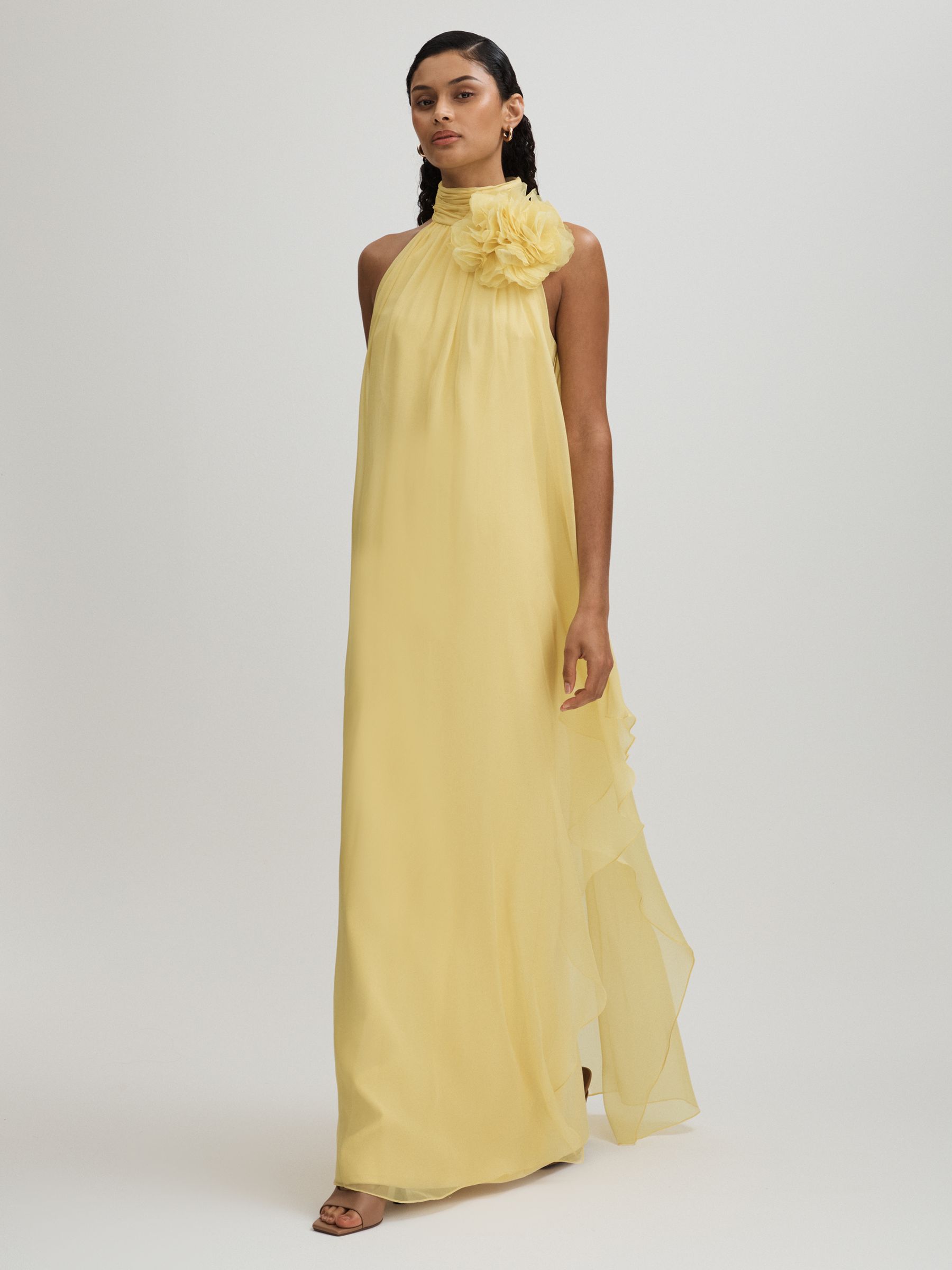 Ginnie Buttermilk Halston Removable Ruffle Chiffon Maxi Dress