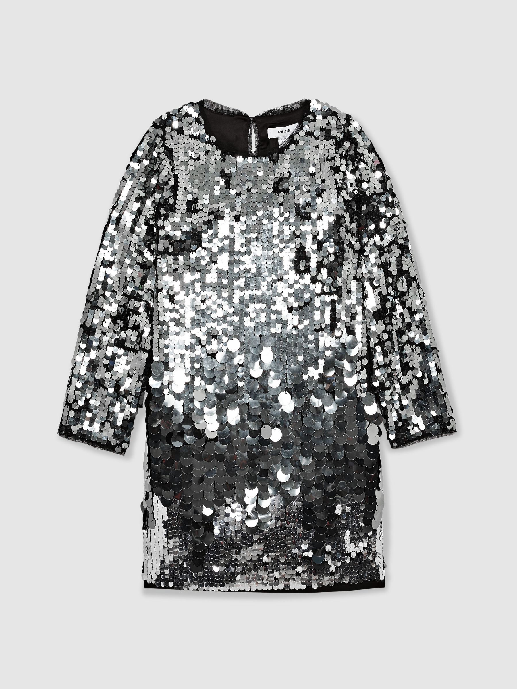 13-14 yrs Sequin-Embellished Shift Dress in Silver
